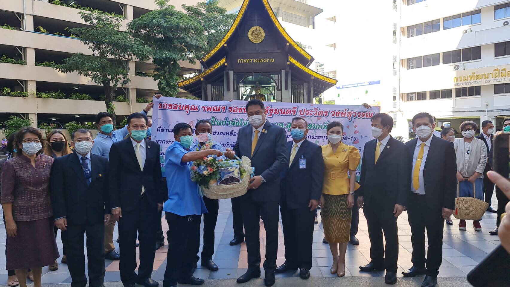 ก่อนการประชุม นายสุชาติ ได้นำผู้แทนกลุ่มแรงงาน ได้แก่ นายวิฑูรย์ แนวพานิช นายกสมาคมการค้าแท็กซี่ไทย นางฐนิวรรณ กุลมงคล นายกสมาคมภัตตาคารไทย และนางญาดา พรเพชรรัมภา นายกชมรมหาบเร่แผงลอย กทม. มอบของที่ระลึกและกล่าวขอบคุณพล.อ.ประวิตร ผ่านนายสุชาติในโอกาสที่รัฐบาลให้ความช่วยเหลือ เยียวยาแรงงานทั้ง 3 กลุ่มที่ได้รับผลกระทบจากโควิด-19 อย่างดียิ่ง และประทับใจต่อการดำเนินงานของกระทรวงแรงงาน
