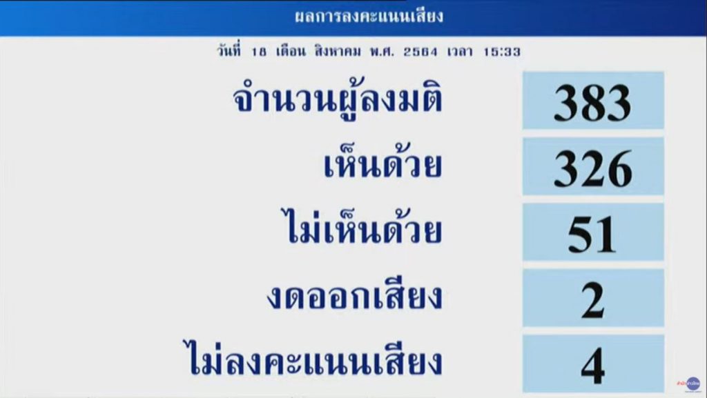 รัฐสภา 18 ส.ค.-ก้าวไกลจัดหนัก ค้านโยกงบที่ปรับลดเข้างบกลาง ชี้ตรวจสอบยาก สุดท้ายต้องโหวต เสียงส่วนใหญ่เห็นชอบให้โยกงบ 16,362 ล้าน เข้างบการกลางไว้แก้ปัญหาโควิด