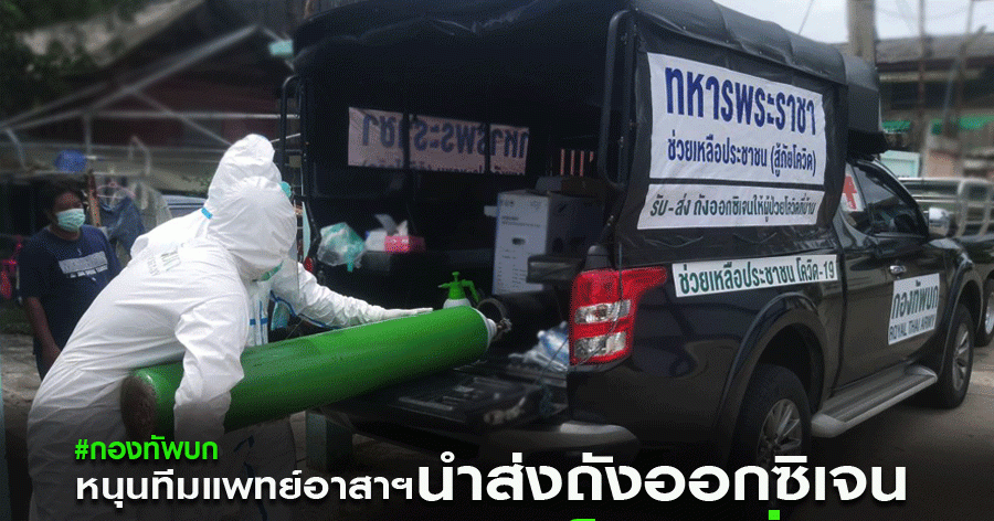 พ.ท.หญิง พัชรินทร์ บุศยกุล ผู้ช่วยโฆษกกองทัพบก เปิดเผยว่า จากการประสานขอความช่วยเหลือของทีมแพทย์อาสา จากราชวิทยาลัยแพทย์เวชศาสตร์ครอบครัวแห่งประเทศไทย ร่วมกับกลุ่มจิตอาสา จัดตั้งเครือข่ายดูแลผู้ติดเชื้อโควิด-19 ที่บ้านหรือ Home Isolation ผ่านศูนย์ประสานงานต้านภัยโควิด กองทัพบก เพื่อให้กองทัพบกช่วยนำส่งถังออกซิเจนให้กับผู้ป่วยโควิดที่มีอาการทางระบบการหายใจ และต้องการออกซิเจนเพื่อช่วยในการรักษา ตามบ้านพักอาศัย ในพื้นที่ กทม.และปริมณฑล พล.อ.ณรงค์พันธ์ จิตต์แก้วแท้ ผู้บัญชาการทหารบกสั่งการให้หน่วยทหารสนับสนุนยานพาหนะและกำลังพลเพิ่มเติมสำหรับภารกิจนี้ โดยเฉพาะจากกรมการทหารสื่อสาร หน่วยบัญชาการป้องกันภัยทางอากาศกองทัพบก กองพลทหารปืนใหญ่ต่อสู้อากาศยาน กรมยุทธโยธาทหารบก และกรมสรรพวุธทหารบกภายใต้การกำกับดูแลของศูนย์ควบคุมการเคลื่อนย้าย ศูนย์ปฏิบัติการแก้ไขสถานการณ์ฉุกเฉินด้านความมั่นคง กองทัพบก(ศคย.ศปม.ทบ.)