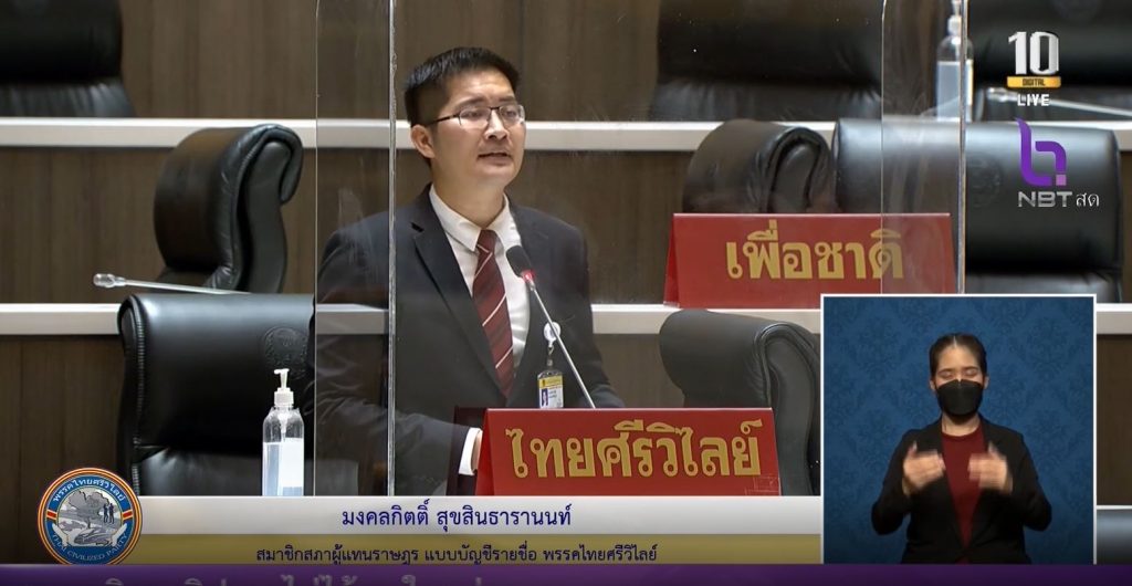 จากนั้นการอภิปรายเริ่มดุเดือนขึ้น เมื่อนายมงคลกิตติ์ สุขสินธรานนท์ พรรคไทยศิวิไลย์ ที่จองกฐินอภิปรายนายกฯ โจมตีแก้ปัญหาโควิดแบบปล่อยให้ประชาชนเผชิญโรคระบาดแบบตามมีตามเกิด รอคอยวัคซีน แต่นายกฯ กลับ Work From Home และใช้ถ้อยคำที่รุนแรง จนทำให้นายคารม พลพรกลาง ส.ส.บัญชีรายชื่อ พรรคก้าวไกล ซึ่งประกาศชัดเจนว่า จะย้ายไปสังกัดพรรคภูมิใจ ลุกขึ้นประท้วง ว่า คำพูดของนายมงคลกิตติ์ ไม่เหมาะกับคนที่เป็น ส.ส. ไม่ใช่แค่ด้อยค่าวัคซีนและแต่ยังด้อยค่า ส.ส.ด้วย ต่อมา นายสุชาติ ตันเจริญ ปฏิบัติหน้าที่ประธานในที่ประชุม วินิจฉัยว่า ผู้อภิปรายยังอยู่ในประเด็น ทำให้นายมงคลกิตติ์ ได้อภิปรายต่อ แต่ยังถูกประท้วงเป็นระยะ จนอภิปรายจบ