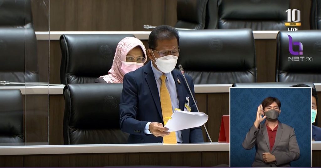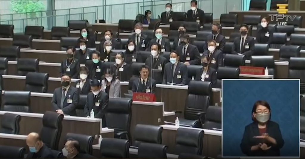 ขณะที่ นพ.ชลน่าน ศรีแก้ว ส.ส.พรรคเพื่อไทย ตั้งข้อกล่าวหา ว่า นายกฯ ปล่อยปละละเลยต่อมาตรการป้องกันควบคุมโรคระบาดจนระบบสาธารสุขล้มเหลว พร้อมชวน ส.ส.พรรคเพื่อไทย ที่อยู่ในห้องประชุมยืนไว้อาลัยเชิงสัญลักษณ์ ให้กับผู้เสียชีวิตจากโควิด-19 กลางสภาฯ