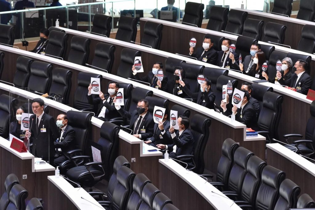 รัฐสภา 1 ก.ย.- เพื่อไทย ชี้นายกฯ บริหารวัคซีนผิดพลาด ล็อกดาวน์ไม่มีแบบแผน ทำไทยเป็นคนป่วยแห่งเอเชีย ตัวเลขหนี้พุ่งสูง เอื้อประโยชน์เจ้าสัวไทยรวยขึ้น จี้ออกจากตำแหน่ง