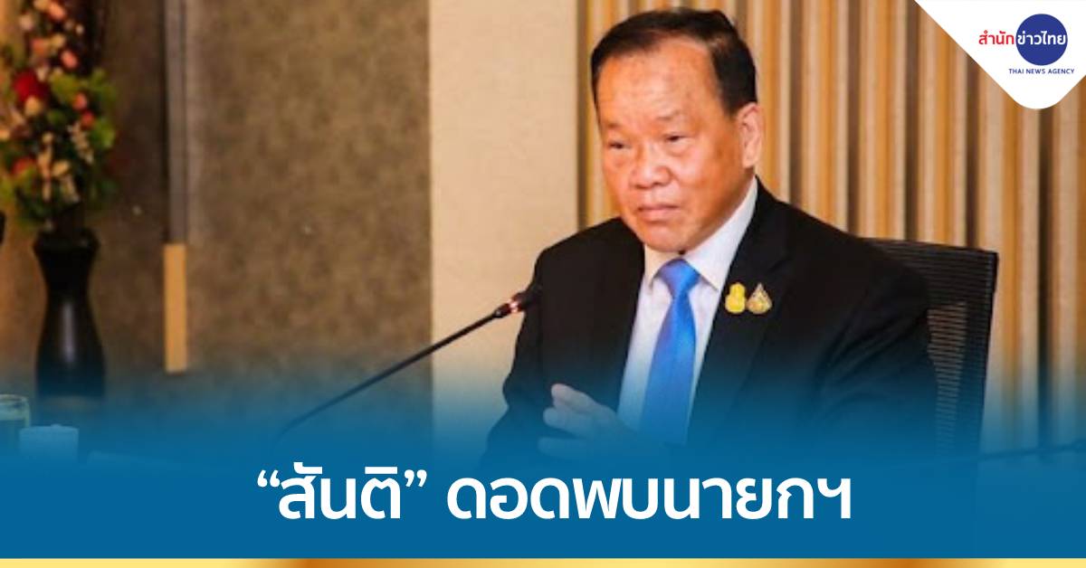 นายธนกร วังบุญคงชนะ โฆษกประจำสำนักนายกรัฐมนตรี เปิดเผยกรณีดังกล่าวว่า นายสันติได้นำข้อราชการเกี่ยวกับการแผนงาน กิจการ กิจกรรมเพื่อกระตุ้นการบริโภคและใช้จ่ายของประชาชนเพิ่มเติมมาหารือ หลังจากที่ศบค.ปรับมาตรการผ่อนคลายการควบคุมโควิด- 19 ตั้งแต่วันที่ 1 กันยายนที่ผ่านมาเพื่อกระตุ้นเศรษฐกิจในปลายปีนี้ ยืนยันไม่ได้หารือประเด็นการเมือง เป็นการคาดเดากันไปเอง.-สำนักข่าวไทย