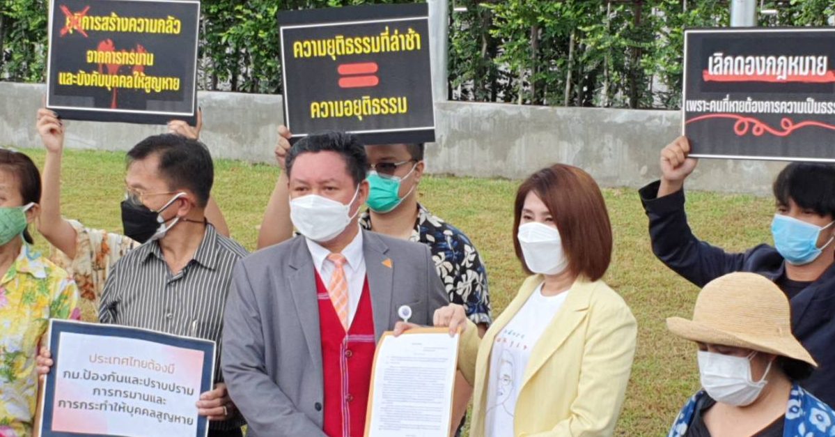 ผู้สื่อข่าวรายงานว่า น.ส.พรเพ็ญ คงขจรเกียรติ ผู้อำนวยการมูลนิธิผสานวัฒนธรรม พร้อมด้วย น.ส.ปิยนุช โคตรสาร ผู้อำนวยการแอมเนสตี้ อินเตอร์เนชั่นแนล ประเทศไทย รวมถึงภาคประชาสังคม , เครือข่ายญาติผู้เสียหายจากการทรมาน-อุ้มหาย และนายธนัตถ์ ธนากิจอำนวย หรือไฮโซลูกนัท ร่วมกิจกรรมเชิงสัญลักษณ์พร้อมยื่นหนังสือผ่านไปยังสภาผู้แทนราษฎร ที่หน้าอาคารรัฐสภา เพื่อผลักดันร่างพระราชบัญญัติป้องกันและปราบปรามการทรมานและการกระทำให้บุคคลสูญหาย ซึ่งร่างกฎหมายดังกล่าวมี 4 ฉบับ โดยมีนายมานพ คีรีภูวดล ส.ส.บัญชีรายชื่อ พรรคก้าวไกล เป็นตัวแทนส.ส. พรรคก้าวไกล มารับหนังสือ พร้อมยืนยัน พรรคก้าวไกล จะเร่งผลักดันให้การพิจารณากฎหมายฉบับดังกล่าวให้ทันการพิจารณาในสมัยประชุมนี้