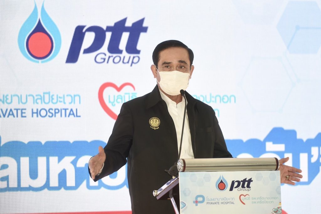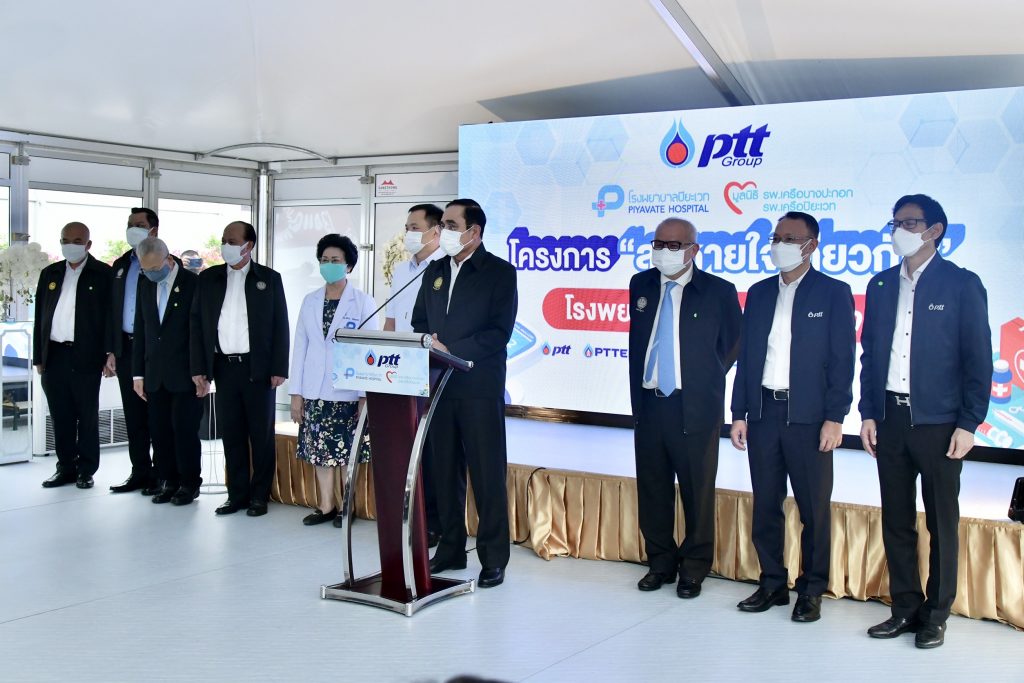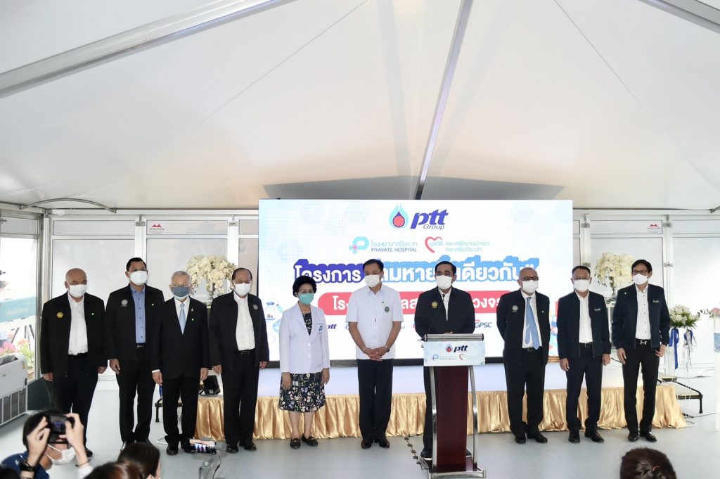 พล.อ.ประยุทธ์ จันทร์โอชา นายกรัฐมนตรีและรัฐมนตรีว่าการกระทรวงกลาโหม พร้อมด้วย นายอนุทิน ชาญวีรกูล รองนายกรัฐมนตรี และรัฐมนตรีว่าการกระทรวงมหาดไทย พล.อ.อนุพงษ์ เผ่าจินดา รัฐมนตรีว่าการกระทรวงมหาดไทย นายสุพัฒนพงษ์ พันธ์มีเชาว์ รองนายกรัฐมนตรีและรัฐมนตรีว่าการกระทรวงพลังงาน ลงพื้นที่ตรวจเยี่ยมโรงพยาบาลสนามICU สำหรับผู้ป่วยโควิด-19 ระดับสีแดง จำนวน 120 เตียง ตามโครงการลมหายใจเดียวกัน กลุ่ม ปตท. บนพื้นที่4ไร่ ด้านหน้าโรงพยาบาลปิยะเวท เขตห้วยขวาง กรุงเทพฯ โดยมีนายทศพร ศิริสัมพันธ์ ประธานกรรมการ ปตท. นายอรรถพล ฤกษ์พิบูลย์ ประธานเจ้าหน้าที่บริหารโรงพยาบาลในเครือบางปะกอก-ปิยะเวท นพ.วิทิต อรรถเวชกุล กรรมการผู้จัดการบริษัทโรงพยาบาลปิยะเวท จำกัด (มหาชน) ให้การต้อนรับ