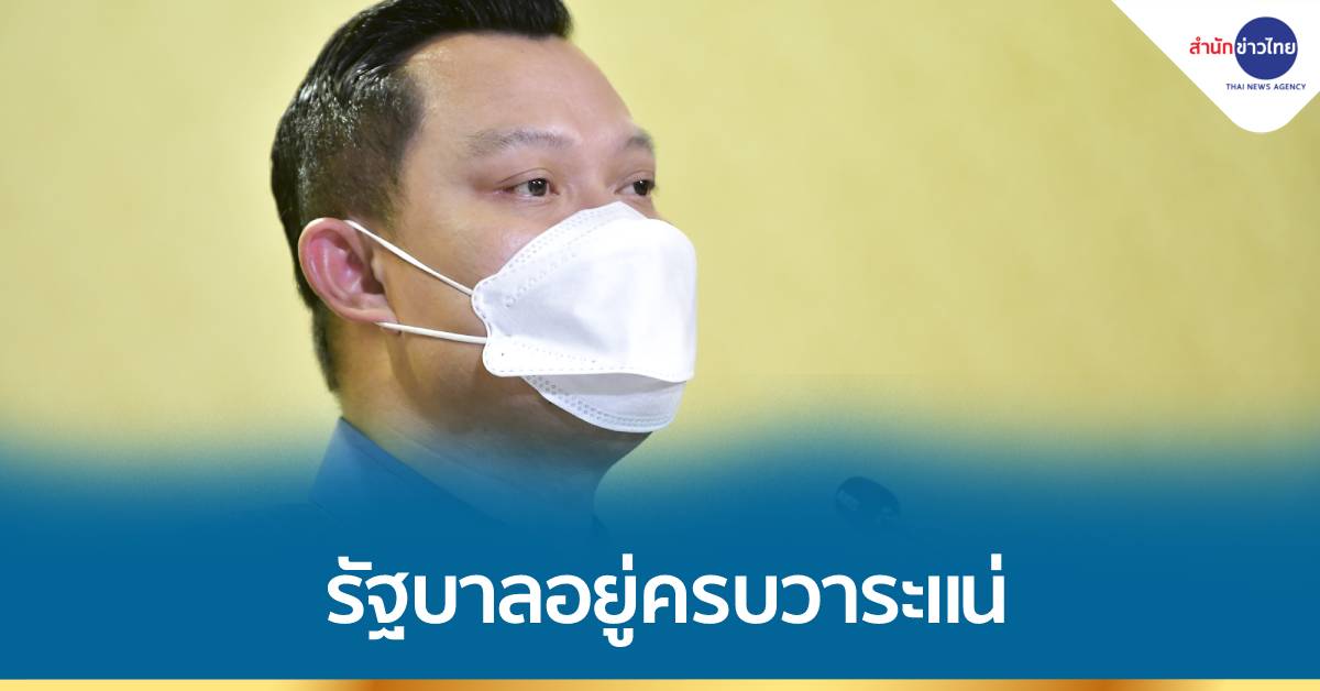 กรุงเทพฯ 12 ก.ย.-โฆษกรัฐบาลยัน รัฐบาลอยู่ครบวาระแน่ แจงยุบสภาฯ ไม่ช่วยให้สถานการณ์ดีขึ้น อาจซ้ำเติมให้แย่ลงไปอีก เผย นายกฯ กำชับหลังเสร็จศึกซักฟอก เร่งคุมการแพร่ระบาดโควิด ฉีดวัคซีนให้ได้มากที่สุด เพื่อเปิดประเทศรับนักท่องเที่ยว ประชาชนกลับมาใช้ชีวิตปกติ