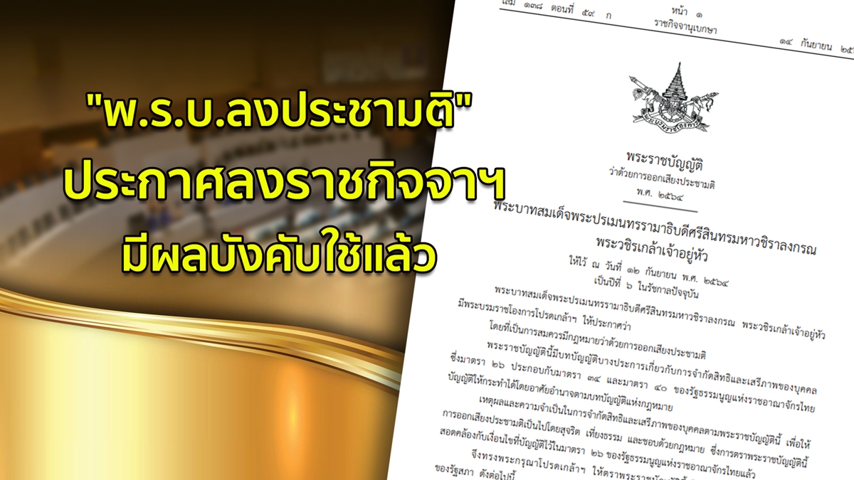 ราชกิจจานุเบกษา ประกาศให้ พ.ร.บ.ลงประชามติ พ.ศ. 2564 มีผลบังคับใช้แล้ว ภายหลังร่างแก้ไขเพิ่มเติมรัฐธรรมนูญ ในประเด็นบัตรเลือกตั้ง 2 ใบ ผ่านการลงมติเห็นชอบจากที่ประชุมร่วมรัฐสภา ในวาระ 3 โดยกำหนดสาระสำคัญของการออกเสียงลงประชามติ เป็นหนึ่งในหัวข้อสำคัญ ลงประชามติร่างแก้ไขเพิ่มเติมรัฐธรรมนูญ