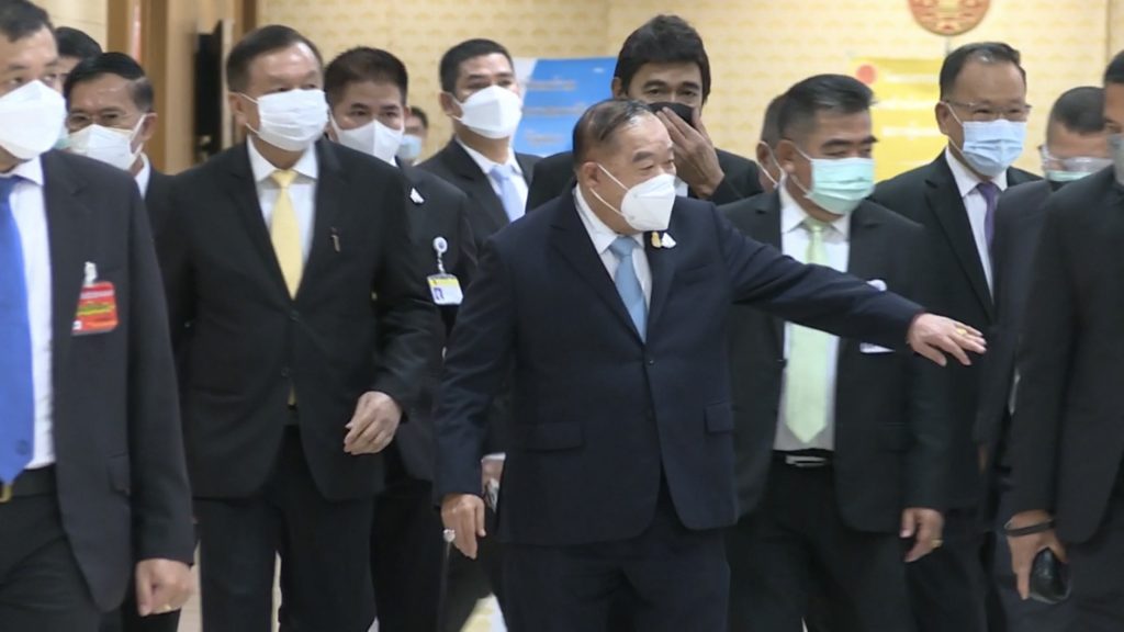 ผู้สื่อข่าวรายงานว่า บรรยากาศภายในห้องประชุมมีรัฐมนตรีของพรรค และ ส.ส. เข้าร่วมประชุมอย่างพร้อมเพียงกัน โดยที่ประชุมได้ใช้เวลาพูดคุยกันประมาณ 50 นาที ก่อนที่หัวหน้าพรรคจะเดินทางกลับ โดยกล่าวกับสื่อมวลชนสั้นๆ ว่าได้กำชับส.ส. และรัฐมนตรีของพรรคให้รักกัน และก่อนเดินทางกลับ พล.อ.ประวิตร ได้เข้าไปสวมกอดนายสมศักดิ์ เทพสุทิน แกนนำกลุ่มสามมิตร ก่อนจะเดินทางกลับพร้อมกับ ร.อ.ธรรมนัสและนางนฤมล โดยสื่อมวลชนได้พยายามสอบถาม ร.อ.ธรรมนัส ว่าสบายใจแล้วใช่หรือไม่ ซึ่งเจ้าตัวกล่าวว่า “สบายใจมาตั้งนานแล้ว” ขณะที่นางนฤมลไม่ได้ตอบคำถามใดๆ กับสื่อมวลชน.- สำนักข่าวไทย