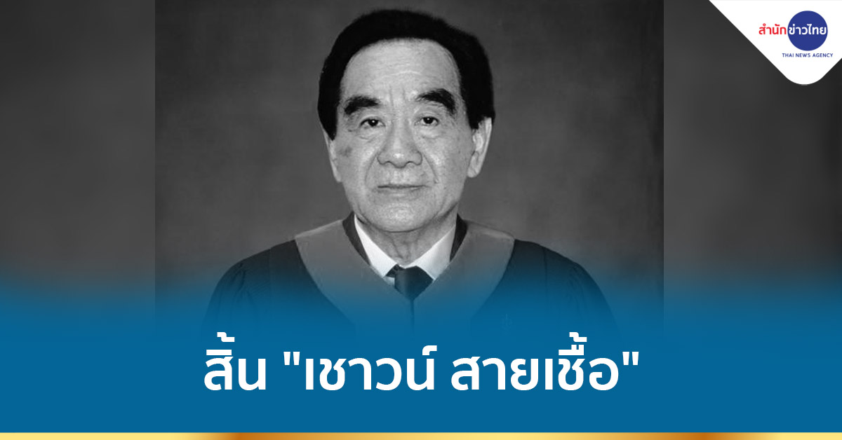 กทม. 19 ก.ย.- “เชาวน์ สายเชื้อ” อดีตประธานศาลรัฐธรรมนูญ ถึงแก่อนิจกรรมแล้วในวัย 91 ปี ด้วยโรคชราและหัวใจล้มเหลว