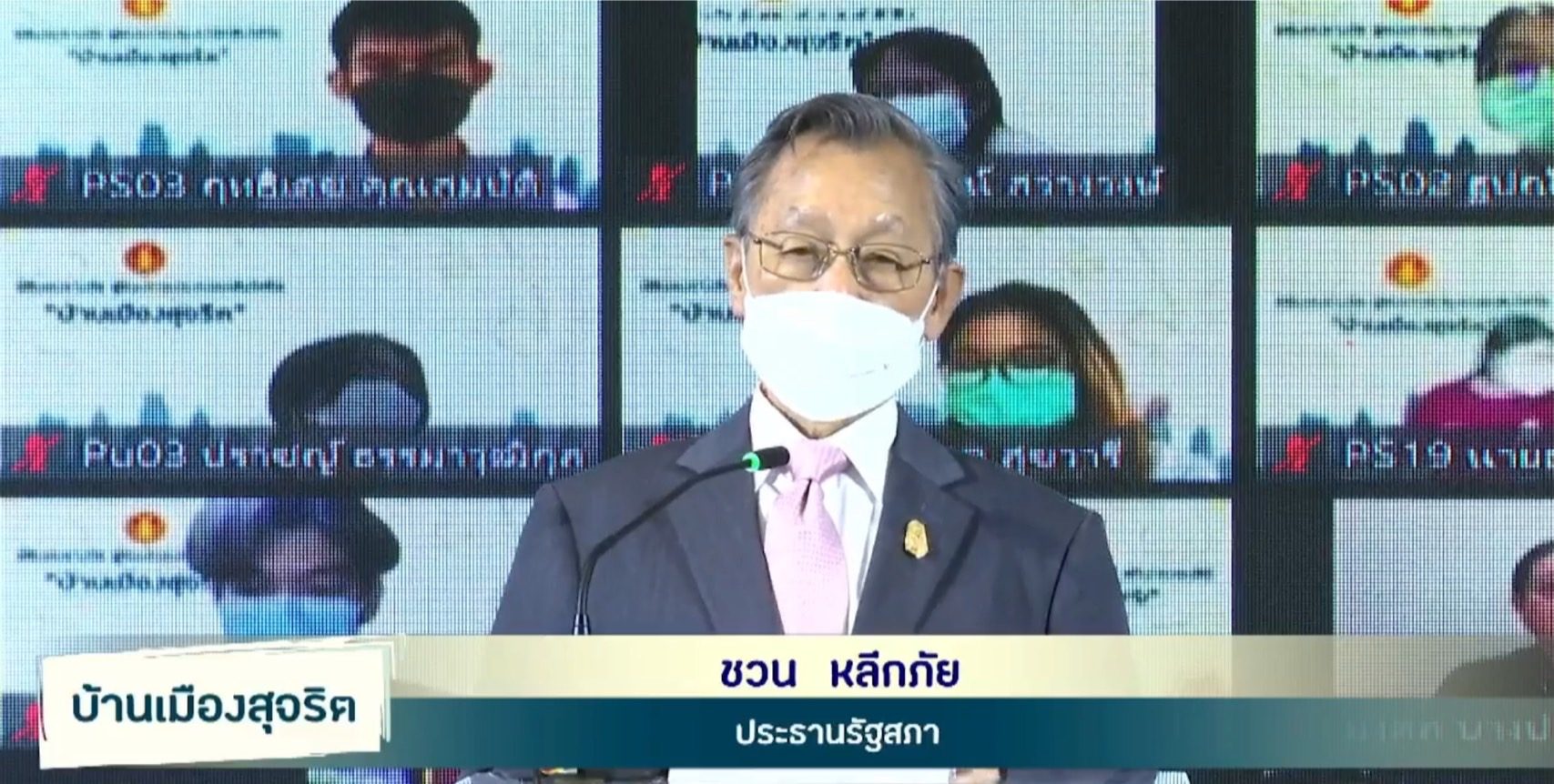 “ในบ้านเมืองทุกคนรู้ระเบียบ รู้กฎหมาย แต่ยังมีคนทำผิด เพราะไม่ปฏิบัติ แม้จะรู้หลักจริยธรรม หลักธรรมาภิบาล แต่ไม่ปฏิบัติ ทั้งที่ภาคปฏิบัติคือหัวใจสำเร็จ โดยสภาพยายามทำแนวทางสุจริตให้เกิดขึ้นในทางปฏิบัติ และให้ทุกสถาบันการศึกษาร่วมปลูกฝังเยาวชนเชื่อมั่นในความซื่อสัตย์สุจริต ปฏิเสธการทุจริต เชื่อว่าจะส่งผลต่อการเมือง ไม่ซื้อสิทธิขายเสียงที่จะส่งผลร้าย” ประธานรัฐสภา กล่าว