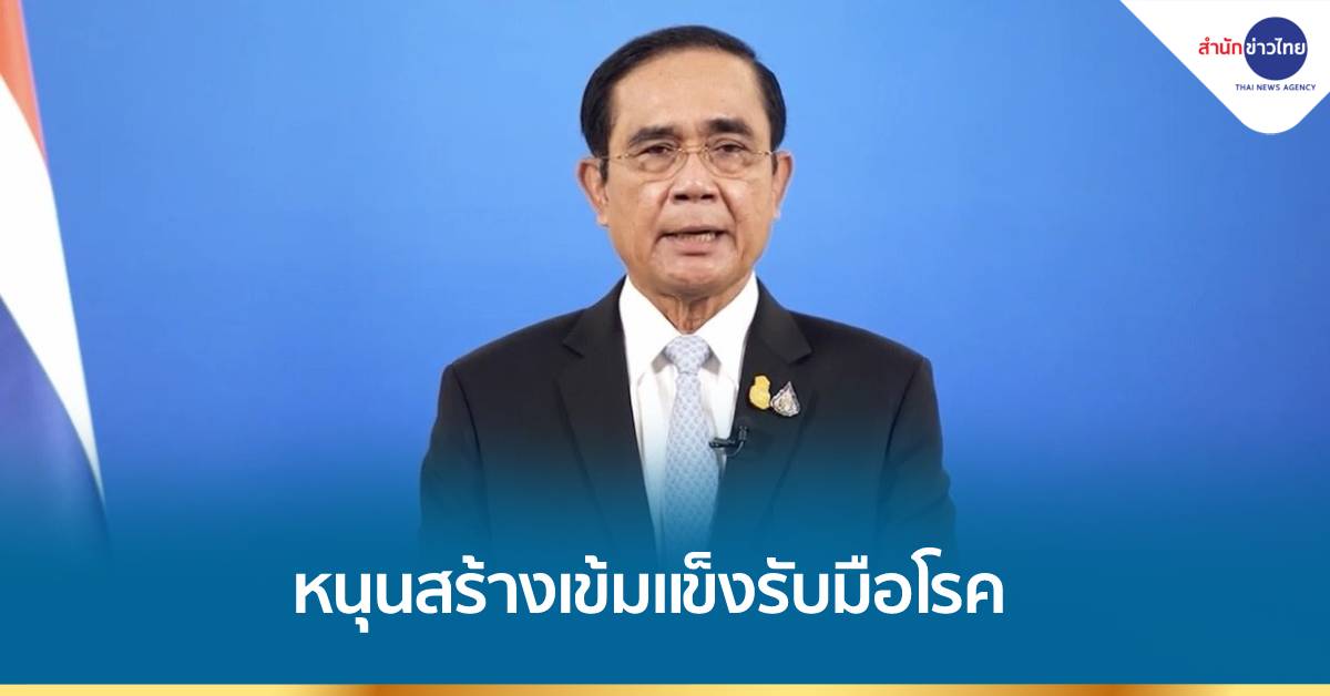 นายกรัฐมนตรี แสดงความยินดีที่ได้รับเชิญเข้าร่วมการประชุมครั้งนี้ และไทยเชื่อมั่นในความร่วมมือพหุภาคีมาตลอด ทั้งเพื่อยุติการแพร่ระบาดของโควิด-19 และเตรียมพร้อมสำหรับภัยคุกคามทางสุขภาพในอนาคต โดยรัฐบาลไทย ร่วมดำเนินการตามเป้าหมาย ดังนี้ 1. ไทยกำหนดให้การฉีดวัคซีนเป็นวาระแห่งชาติ และจะฉีดวัคซีนให้ครอบคลุมประชาชนอย่างน้อยร้อยละ 70 ภายในปีนี้ ขณะเดียวกันรัฐบาลได้ลงทุนในการวิจัยและพัฒนาเพื่อผลิตวัคซีนภายในประเทศ และพร้อมร่วมมือกับนานาประเทศในการเสริมสร้างขีดความสามารถในการผลิตวัคซีนในภูมิภาคและส่งเสริมด้านสุขภาพโลก