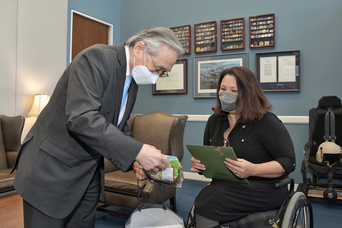 กระทรวงการต่างประเทศ เผยภาพนายดอน ปรมัตถ์วินัย รองนายกรัฐมนตรีและรัฐมนตรีว่าการกระทรวงการต่างประเทศ หารือร่วมกับนางแทมมี ดักเวิร์ธ สมาชิกวุฒิสภาสหรัฐ เชื้อสายไทย ที่ผลักดันให้ทางการสหรัฐบริจาควัคซีนให้ประเทศไทย เมื่อวันที่ 27 กันยายน 2564 ตามเวลาในสหรัฐอเมริกา ระหว่างการเยือนกรุงวอชิงตัน โดยรองนายกรัฐมนตรีและรัฐมนตรีว่าการกระทรวงการต่างประเทศ ได้ขอบคุณ ส.ว.แทมมี ดักเวิร์ธ ต่อบทบาทในการส่งเสริมความสัมพันธ์ไทย-สหรัฐ และได้แลกเปลี่ยนข้อคิดเห็นในประเด็นที่ไทยและสหรัฐให้ความสำคัญร่วมกัน รวมถึงแนวทางการส่งเสริมความร่วมมือด้านการเปลี่ยนแปลงสภาพภูมิอากาศ ซึ่งรองนายกรัฐมนตรีและรัฐมนตรีว่าการกระทรวงการต่างประเทศ ได้กล่าวถึงบทบาทของไทยในฐานะผู้ประสานงานของอาเซียนเรื่องการพัฒนาที่ยั่งยืน และวาระการเป็นเจ้าภาพเอเปก ในปี 2565 ก็จะให้ความสำคัญกับการพัฒนาเศรษฐกิจชีวภาพ-เศรษฐกิจหมุนเวียน-เศรษฐกิจสีเขียว (Bio-Circular-Green Economy) ซึ่งจะช่วยสนับสนุนความพยายามในการแก้ไขปัญหาการเปลี่ยนแปลงสภาพภูมิอากาศ สิ่งแวดล้อม และเป้าหมายการพัฒนาที่ยั่งยืนด้วย