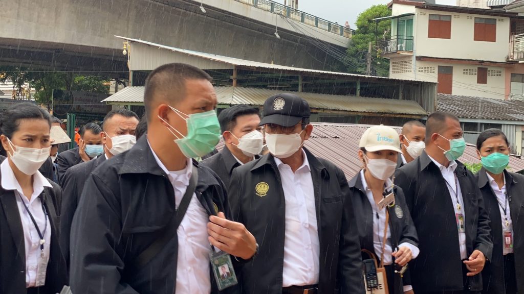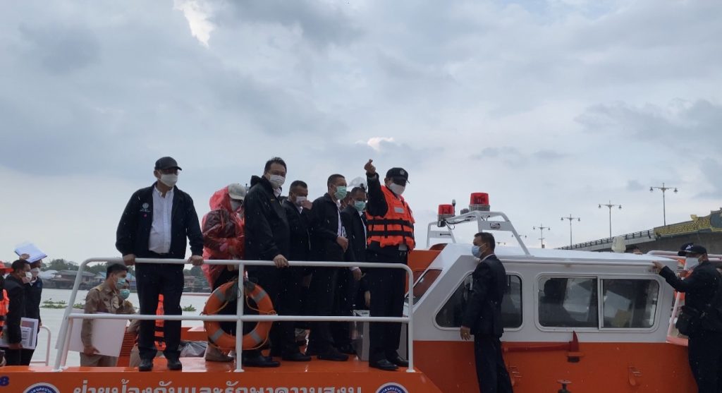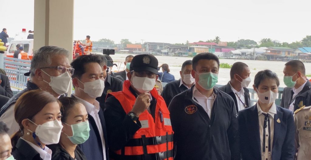 พลเอกประยุทธ์ จันทร์โอชา นายกรัฐมนตรี และ รัฐมนตรีว่าการกระทรวงกลาโหม พร้อมด้วย พลเอกอนุพงษ์ เผ่าจินดา รัฐมนตรีว่าการกระทรวงมหาดไทย นายสุชาติ ชมกลิ่น รัฐมนตรีว่าการกระทรวงแรงงาน นายชัยวุฒิ ธนาคมานุสรณ์ รัฐมนตรีว่าการกระทรวงดิจิทัลเพื่อเศรษฐกิจและสังคม (ดีอีเอส) นายอนุชา นาคาศัย รัฐมนตรีประจำสำนักนายกรัฐมนตรี นายอธิรัฐ รัตนเศรษฐ รัฐมนตรีว่ช่วยว่าการกระทรวงคมนาคม นายสุริยะ จึงรุ่งเรืองกิจ รัฐมนตรีว่าการกระทรวงอุตสาหกรรม และส.ส.พรรคพลังประชารัฐจำนวนหนึ่งมารอต้อนรับ ท่ามกลางการรักษาความปลอดภัยอย่างเข้มงวด เนื่องจากมีกลุ่มผู้ชุมนุมบางกลุ่มเตรียมเคลื่อนไหวขับไล่การลงพื้นที่ของนายกรัฐมนตรีในครั้งนี้ โดยเจ้าหน้าที่ตำรวจ ขอความร่วมมือให้ไปรวมกลุ่มกันที่บริเวณท่าน้ำนนทบุรี ซึ่งนายกรัฐมนตรี จะเดินทางขึ้นเรือหลังจากเสร็จสิ้นภารกิจตรวจสถานการณ์น้ำ