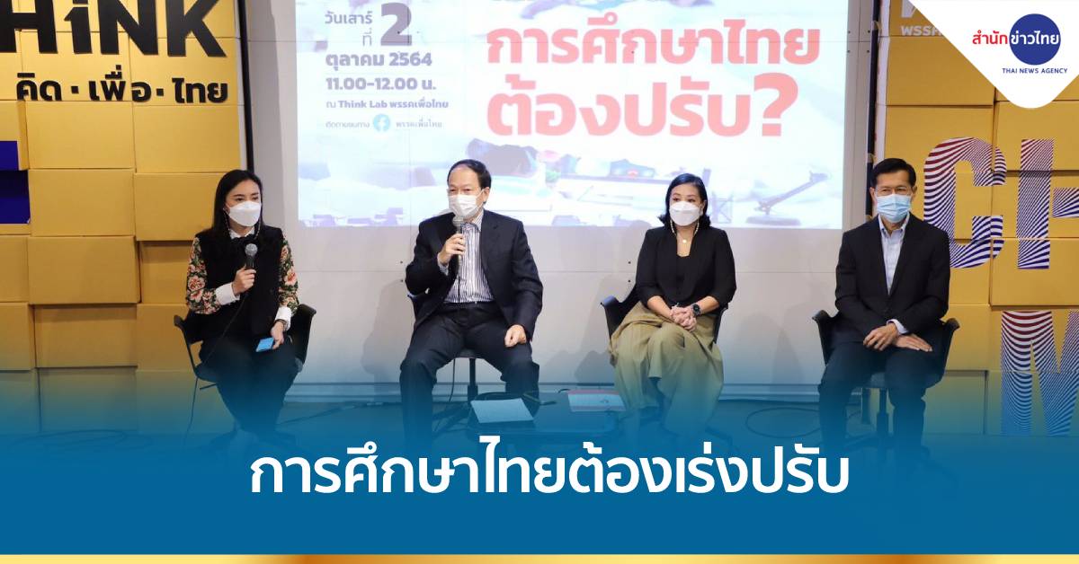 เพื่อไทย 2 ต.ค.-เพื่อไทย ชี้โลกเปลี่ยนการศึกษาไทยต้องเร่งปรับ ให้เรียนรู้ คิด วิเคราะห์ พร้อมเสนอนโยบายดาบ 5 เล่มดันการศึกษาไทยพุ่งทะยาน