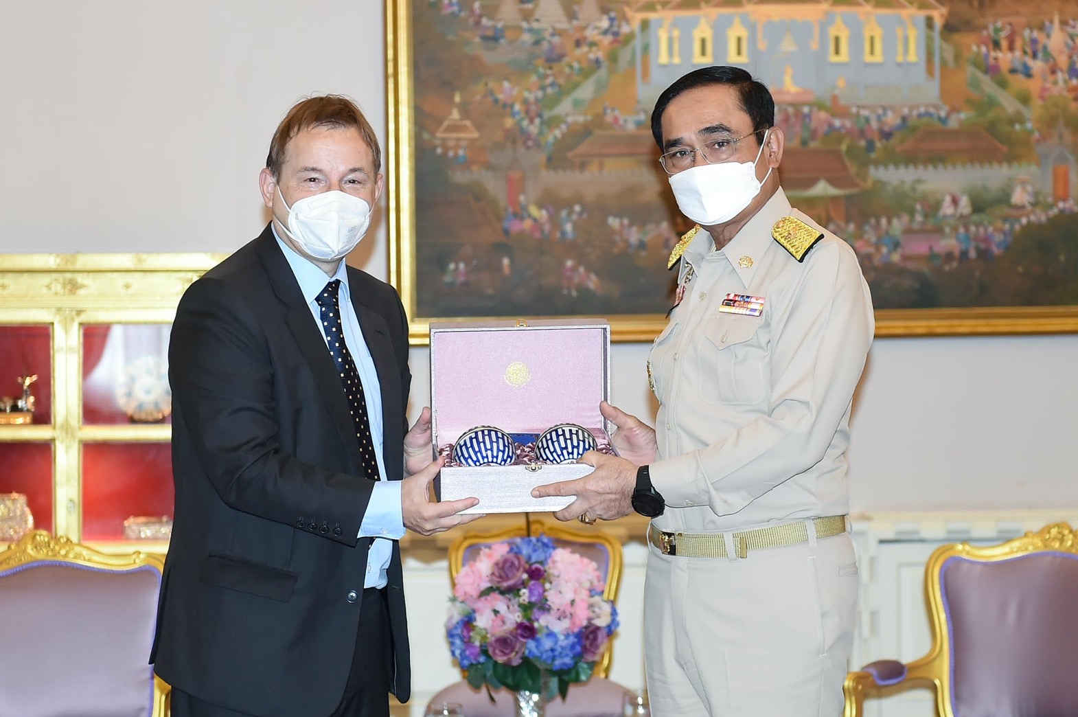 ทำเนียบรัฐบาล 4 ต.ค.-นายกฯ รับมอบยาต้านโควิด- วัคซีนแอสตราเซเนกาจากรัฐบาลเยอรมนี ย้ำความเป็นพันธมิตรสำคัญ เห็นพ้องความมีศักยภาพหลายมิติที่จะร่วมกันทำพัฒนาให้เป็นรูปธรรมยิ่งขึ้น