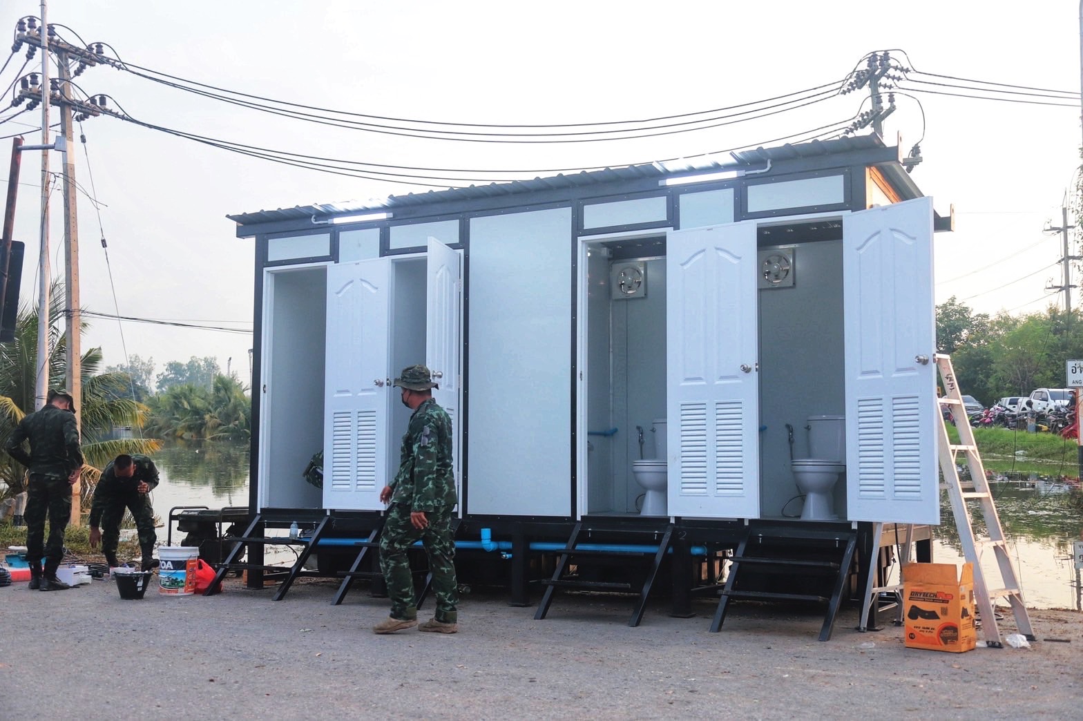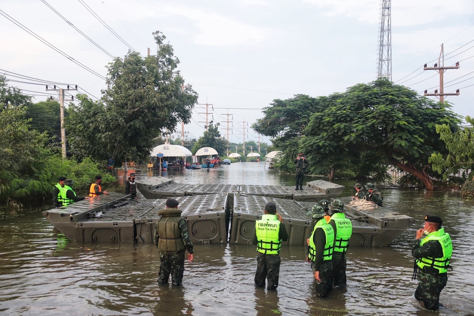 สระบุรี 10 ต.ค. – ทบ.ส่งทหารช่างนำแพ Ribbon Bridge สร้างเป็นบ้านชั่วคราว พร้อมสุขา บรรเทาน้ำท่วม จ.สระบุรี