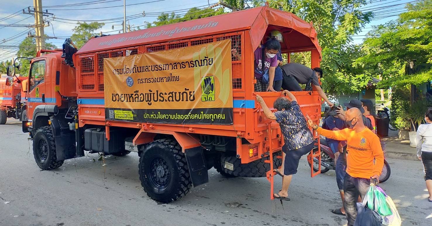กรมป้องกันและบรรเทาสาธารณภัย ในฐานะกองอำนวยการป้องกันและบรรเทาสาธารณภัยกลาง (กอปภ.ก.) รายงานจากอิทธิพลพายุเตี้ยนหมู่ ซึ่งเคลื่อนตามแนวร่องมรสุมเข้าปกคลุมภาคตะวันออกเฉียงเหนือ และภาคกลาง ทำให้บริเวณประเทศไทยตอนบนมีฝนเพิ่มมากขึ้นและมีฝนตกหนักถึงหนักมากบางแห่งตั้งแต่วันที่ 23 ก.ย.- 7 ต.ค. 64 ส่งผลให้เกิดน้ำท่วมฉับพลัน น้ำป่าไหลหลากในพื้นที่ 33 จังหวัด ได้แก่ เชียงใหม่ ลำพูน ลำปาง ตาก สุโขทัย พิษณุโลก เพชรบูรณ์ พิจิตร กำแพงเพชร เลย ขอนแก่น มหาสารคาม ชัยภูมิ ยโสธร นครราชสีมา บุรีรัมย์ สุรินทร์ ศรีสะเกษ อุบลราชธานี ปราจีนบุรี สระแก้ว จันทบุรี นครสวรรค์ อุทัยธานี ชัยนาท ลพบุรี สระบุรี สุพรรณบุรี สิงห์บุรี อ่างทอง พระนครศรีอยุธยา ปทุมธานี และนครปฐม รวม 224 อำเภอ 1,189 ตำบล 8,099 หมู่บ้าน 1 เขตเทศบาล ประชาชนได้รับผลกระทบ 331,440 ครัวเรือน