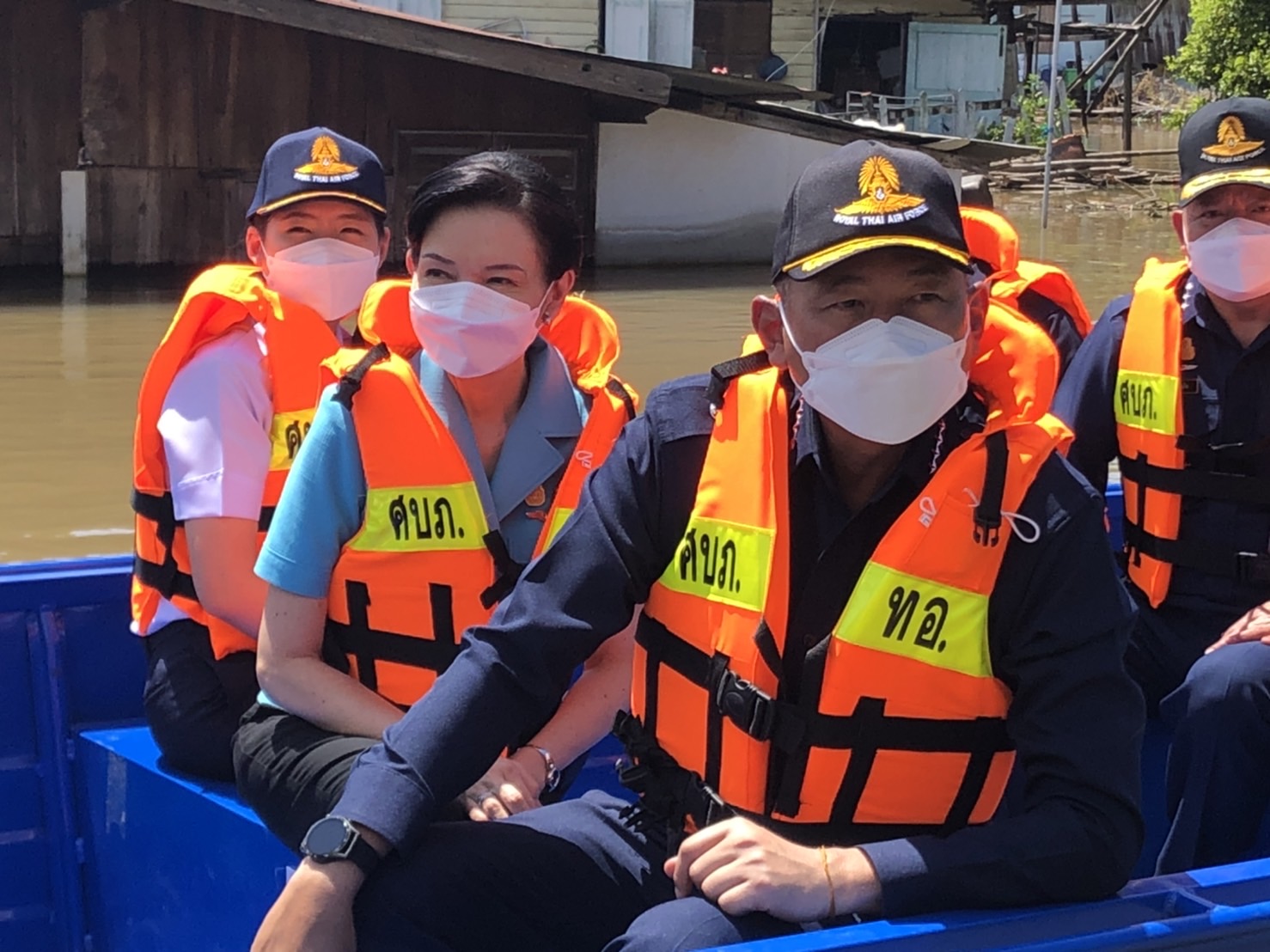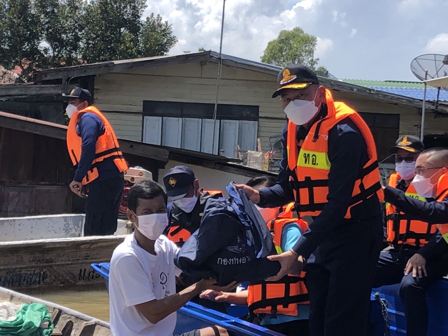 ผู้สื่อข่าวรายงานว่า ผู้บัญชาการทหารอากาศและคณะได้ลงเรือไปมอบถุงยังชีพให้ประชาชนที่ติดอยู่ในบ้าน พร้อมมอบปัจจัยและถุงยังชีพให้คณะสงฆ์วัดกระโดงทองด้วย