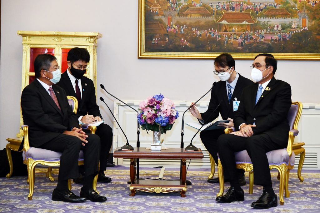 เอกอัครราชทูตญี่ปุ่นประจำประเทศไทยขอบคุณรัฐบาลไทย ที่ให้ความสำคัญกับความร่วมมือกับรัฐบาลญี่ปุ่นเสมอมา ยินดีกับนายกรัฐมนตรีที่สถานการณ์โควิด-19 ในไทยเป็นไปในทิศทางที่ดีขึ้น เชื่อมั่นในการดำเนินนโยบายของนายกรัฐมนตรีที่จะสามารถควบคุมสถานการณ์ให้ดีขึ้นอีก เป็นไปตามแนวทางการดำเนินนโยบายผ่อนคลายและกระตุ้นฟื้นฟูเศรษฐกิจของรัฐบาลไทย ซึ่งนายกรัฐมนตรีได้ประกาศเมื่อวันที่ 11 ตุลาคม 2564 ทั้งนี้นายกรัฐมนตรีญี่ปุ่นได้ฝากความปรารถนาดี และความพร้อมที่จะผลักดันความร่วมมือทางยุทธศาสตร์ในทุกด้านระหว่างญี่ปุ่นกับไทยเพื่อส่งเสริมความสัมพันธ์ทางการทูตซึ่งมีกำหนดครบรอบ 135 ปีในปี 2565