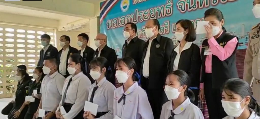จากนั้น นายกรัฐมนตรีได้มอบทุนการศึกษาให้นักเรียนโรงเรียนวัดป่าศรีแสงธรรม พร้อมถ่ายรูปเป็นที่ระลึกกับนักเรียนและคณะครู