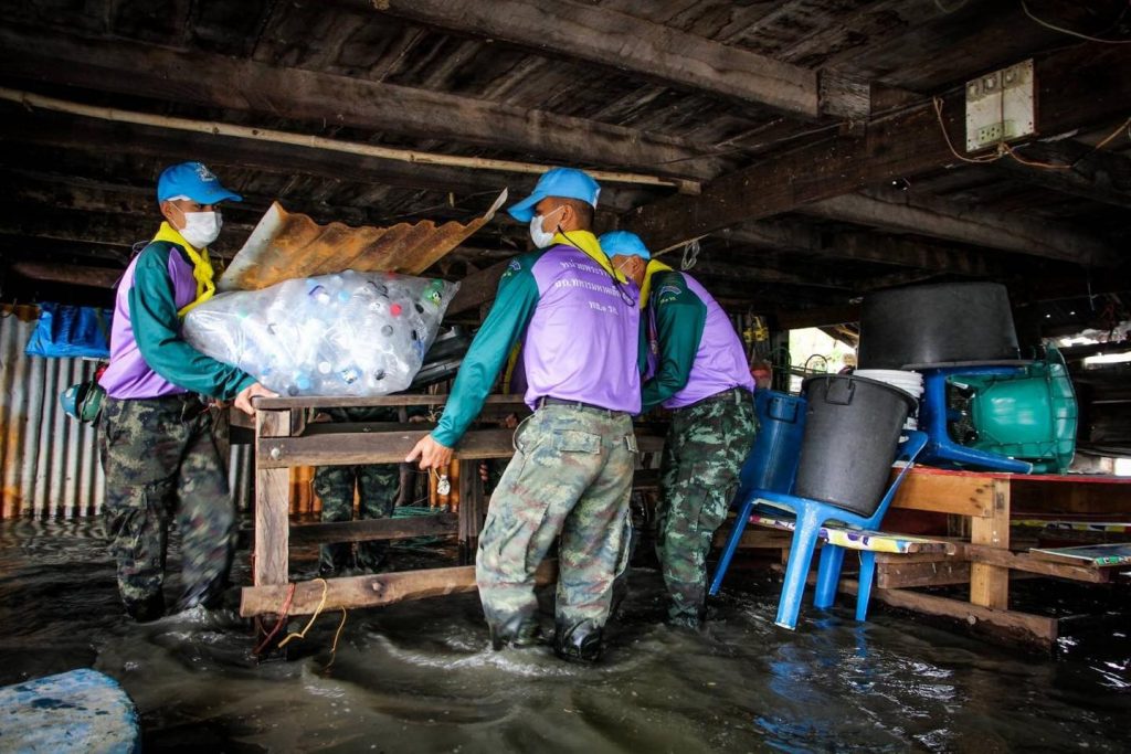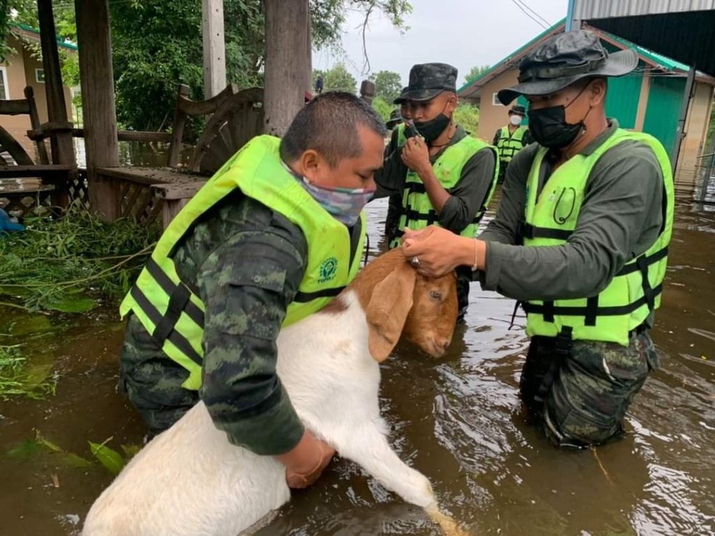 ทั้งนี้ ภาพรวมการช่วยเหลือน้ำท่วมของ กห. โดยทุกเหล่าทัพปัจจุบัน ยังคงสนับสนุนส่วนราชการต่างๆ และทำงานร่วมกับจิตอาสาช่วยเหลือประชาชนที่ประสบอุทกภัยในทุกพื้นที่อย่างต่อเนื่องมา โดยยังคงหมุนเวียนกำลังทหารกว่า 15,000 นาย รวมทั้งเครื่องมือช่างและยานพาหนะกว่า 900 คัน กระจายลงพื้นที่ให้การช่วยเหลือเร่งด่วน ทั้งการอพยพประชาชน ผู้ป่วย ผู้สูงอายุและเด็ก การขนย้ายสัตว์เลี้ยงจำนวนมากออกจากพื้นที่น้ำท่วมเข้าพื้นที่ปลอดภัย และได้เร่งติดตั้งสะพานทางทหารและซ่อมแซมสะพานในเส้นทางที่ถูกตัดขาดกว่า 10 แห่งในพื้นที่พะเยา เพชรบูรณ์และนครราชสีมา ร่วมไปกับการจัดยานพาหนะอำนวยความสะดวกการเดินทางของประชาชนให้สามารถสัญจรได้ปกติ