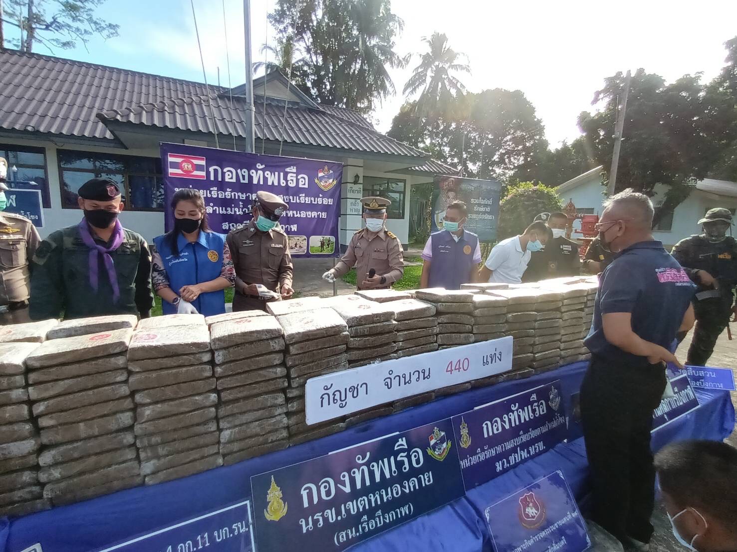 สถานีเรือบึงกาฬ กองทัพเรือตรวจยึดกัญชา 400 กิโลกรัม