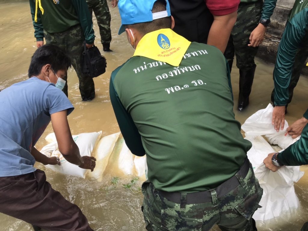 ในขณะเดียวกัน พล.1 รอ. ส่งกำลังพลจิตอาสา จากกองพันทหารสื่อสารที่ 1 (ส.พัน.1) จำนวน 22 นาย ร่วมกับสำนักงานเขตราษฎร์บูรณะ วางแนวกระสอบทรายป้องกันน้ำเอ่อท่วมบ้านเรือนประชาชน ซอยราษฎร์บูรณะ 11 ด้วย. – สำนักข่าวไทย