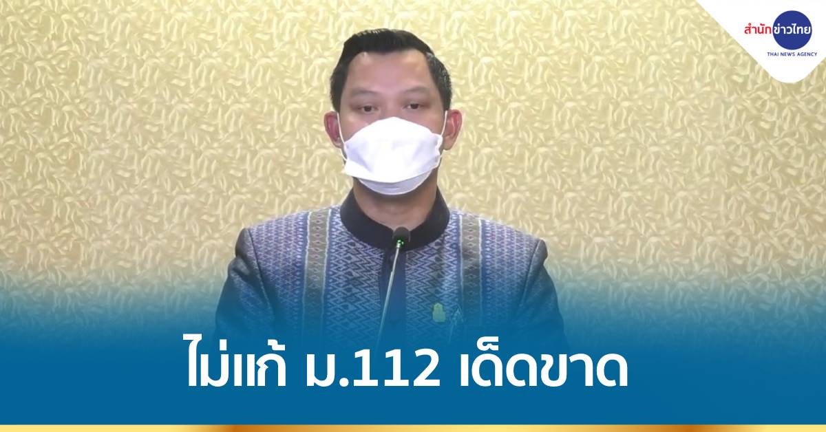 นายธนกร วังบุญคงชนะ โฆษกประจำสำนักนายกรัฐมนตรี กล่าวว่า จากกรณีที่มีกระแสเรียกร้องจากบุคคลบางกลุ่มเสนอให้แก้ไขกฎหมายมาตรา 112 พลเอก ประยุทธ์ จันทร์โอชา นายกรัฐมนตรีและรัฐมนตรีว่าการกระทรวงกลาโหม รวมถึงรัฐบาล ได้ประกาศจุดยืนอย่างชัดเจนหลายครั้ง ไม่สนับสนุนการแก้ไขและการยกเลิกประมวลกฎหมายอาญา มาตรา 112 ยืนยันรัฐบาลบริหารประเทศโดยยึดหลักชาติ ศาสนา และพระมหากษัตริย์ ทั้งนี้ สถาบันพระมหากษัตริย์ เป็นหนึ่งในเสาหลักที่สำคัญของชาติไทย และไม่ควรนำมาเป็นประเด็นในการแบ่งข้างให้เกิดความแตกแยกในสังคม และยังถือเป็นหน้าที่ของคนไทยทุกคนในการปกป้อง ชาติ ศาสนา พระมหากษัตริย์ ซึ่งเป็นเสาหลักและศูนย์รวมใจของคนไทยทั้งชาติ