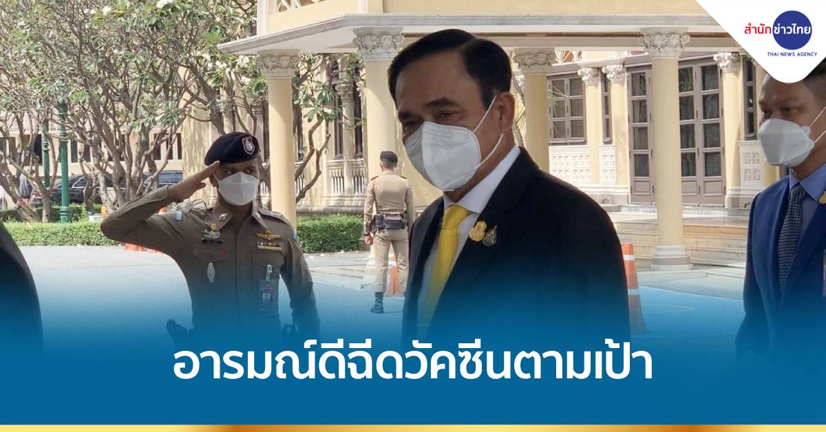ทำเนียบรัฐบาล 12 พ.ย.-นายกฯ อารมณ์ดี อวยพรให้นักข่าวมีความสุข ตอบสื่อสั้น ๆ ฉีดวัคซีนตามเป้าแล้ว แต่ไม่ตอบเมื่อถูกถามกรณีอาจนำคำวินิจฉัยศาล รธน.ไปเคลื่อนไหวการเมือง
