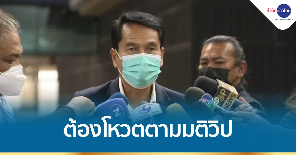 รัฐสภา 15 พ.ค.-ประธานวิปฝ่ายค้าน ระบุ ถ้าร่างแก้ไขเพิ่มเติมรัฐธรรมนูญฉบับประชาชนไม่ผ่านรัฐสภาจะต้องมีเหตุผลอธิบาย เพื่อไม่ให้ผลการลงมติซ้ำเติมวิกฤติการเมือง ย้ำ พรรคร่วมฝ่ายค้านต้องโหวตทิศทางเดียวกับมติวิป