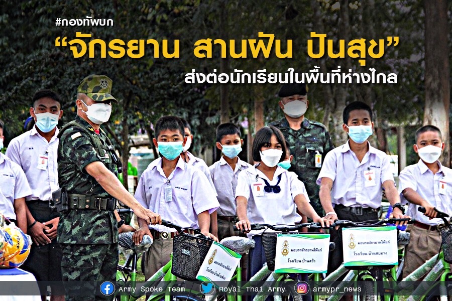 พันตรีหญิง จุฑาทิพย์ วุฒิรณฤทธิ์ ผู้ช่วยโฆษกกองทัพบก เปิดเผยว่า พลเอกณรงค์พันธ์ จิตต์แก้วแท้ ผู้บัญชาการทหารบก เห็นถึงความลำบากของการเดินทางของนักเรียนในพื้นที่ห่างไกล จึงให้หน่วยทหารที่มีความเชี่ยวชาญด้านงานช่าง ทำการซ่อมจักรยาน ที่มีผู้บริจาคให้มีสภาพดีพร้อมใช้ และมอบให้เด็กนักเรียนที่มีความจำเป็น นำไปใช้ในการเดินทางไปโรงเรียน เพื่อความปลอดภัย ในโครงการ “จักรยาน สานฝัน ปันสุข” โดยเริ่มดำเนินการในพื้นที่แนวชายแดนของประเทศ อาทิ พื้นที่ภาคอีสาน ขณะนี้ กองทัพภาคที่ 2 โดยมณฑลทหารบกที่ 26,กรมทหารราบที่ 3, กรมทหารราบที่ 8, กรมทหารราบที่ 13, กรมทหารราบที่ 16และ กรมทหารราบที่ 23 เป็นต้น ได้ทำการซ่อมบำรุงจักรยานที่ได้รับบริจาค เพื่อส่งต่อให้กับผู้ขาดแคลนต่อไป และในพื้นที่ภาคเหนือ ในส่วนของกองทัพภาคที่ 3 ได้นำจักรยานที่ได้รับการบริจาค มาซ่อมแซมเพื่อให้ใช้การได้ตามปกติ โดยนำไปมอบให้นักเรียนที่ขาดแคลนในชนบท และห่างไกลในที่ 4 จังหวัด ได้แก่ จ.เชียงใหม่, จ.น่าน, จ.ตาก และ จ.แม่ฮ่องสอน ซึ่งในพื้นที่ภาคเหนือ มีนักเรียนแจ้งความประสงค์ 5,899 คน จาก 56 โรงเรียน ในพื้นที่ 17 จังหวัดภาคเหนือ ทั้งนี้ ขอเชิญชวนประชาชนบริจาคจักรยานเก่า ที่ไม่ใช้แล้วได้ที่หน่วยทหารใกล้บ้าน เพื่อซ่อมและส่งต่อให้กับนักเรียนในพื้นที่ห่างไกลได้ใช้ประโยชน์ต่อไป.-สำนักข่าวไทย