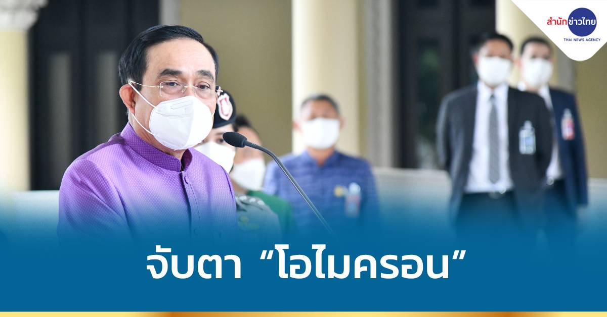 กทม. 4 ธ.ค.-นายกฯ สั่งจับตา “โอไมครอน” ใกล้ชิด หลังพบผู้ติดเชื้อในมาเลเซียเป็นรายแรก กำชับแนวชายแดนป้องกันลักลอบเข้าเมืองอย่างเข้มงวด เร่งฉีดวัคซีนโควิดให้ครอบคลุมมากที่สุด