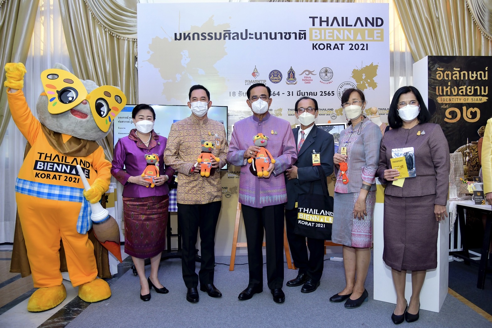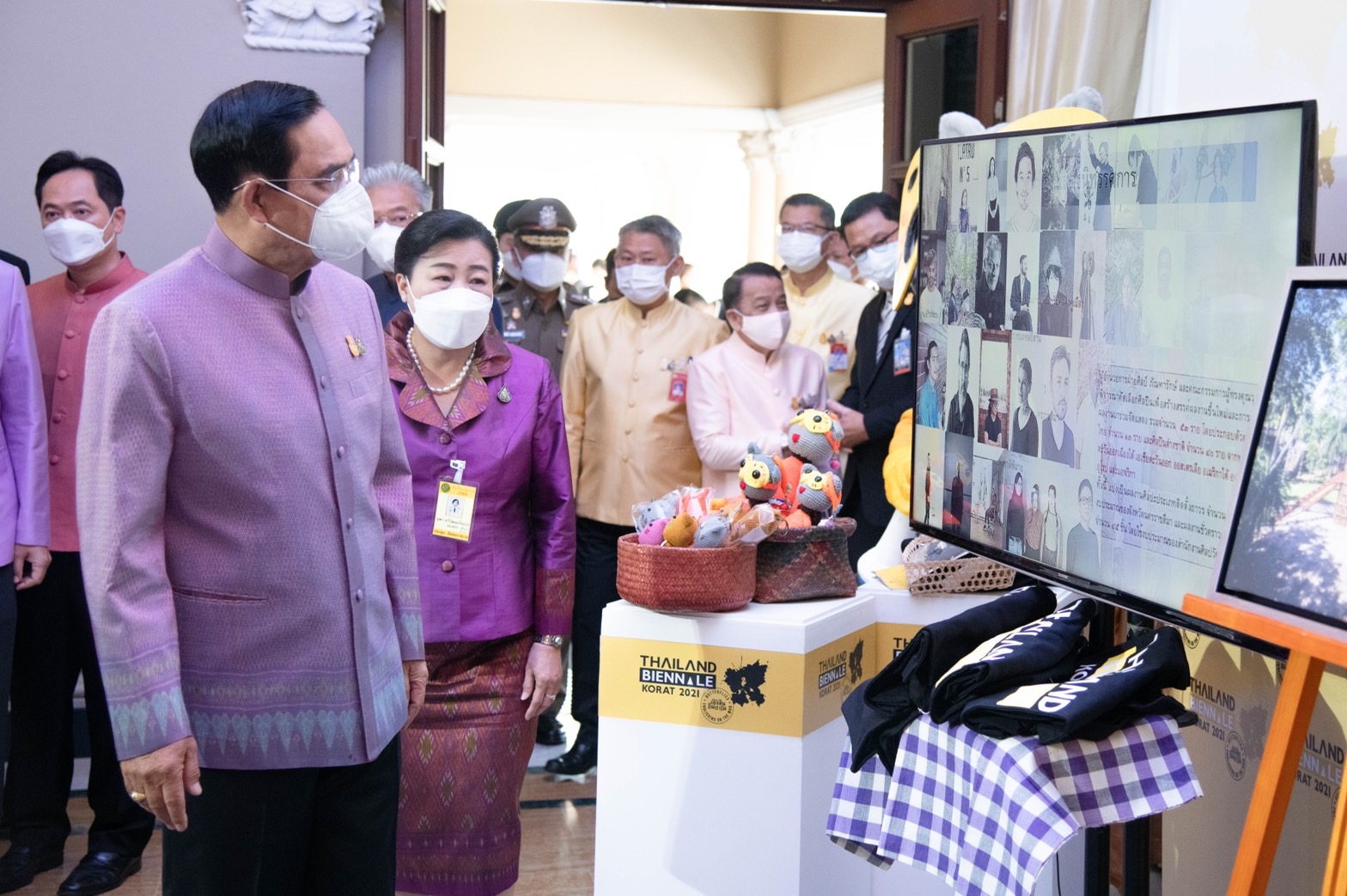 จากนั้น นายกรัฐมนตรีร่วมประชาสัมพันธ์โครงการการแสดงศิลปกรรมร่วมสมัยนานาชาติ Thailand Biennale, Korat 2021 ของกระทรวงวัฒนธรรม โดยระหว่างการเยี่ยมชมเกิดเหตุไฟสปอร์ตไลท์ดับลง เนื่องจากมีผู้ร่วมงานเดินสะดุดปลั๊กไฟ ทั้งนี้ นายกรัฐมนตรีกล่าวชื่นชมการจัดแสดงศิลปกรรมร่วมสมัยนานาชาติ Thailand Biennale, Korat 2021 ว่า เป็นโอกาสดีในการถ่ายทอดศิลปะ หัตถกรรม ภูมิปัญญา ส่งเสริมกระตุ้นเศรษฐกิจระยะยาว ภายหลังมาตรการเปิดประเทศ พร้อมเชิญชวนพี่น้องประชาชนเข้าร่วมชมงานที่จะจัดขึ้นระหว่างวันที่ 18 ธันวาคม 2564 – 31 มีนาคม 2565 ที่จังหวัดนครราชสีมา