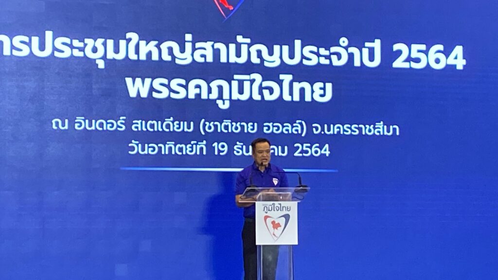 พรรคภูมิใจไทยจัดประชุมใหญ่สามัญประจำปี 2564 ที่อินดอร์สเตเดียม (ชาติชาย ฮอลล์) จ.นครราชีมา นำโดย นายอนุทิน ชาญวีรกูล รองนายกรัฐมนตรี และรัฐมนตรีว่าการกระทรวงสาธารณสุข ในฐานะหัวหน้าพรรคภูมิใจไทย นายศักดิ์สยาม ชิดชอบ รัฐมนตรีว่าการกระทรวงคมนาคม ในฐานะเลขาธิการพรรค พร้อมด้วยรัฐมนตรี ส.ส. และสมาชิกพรรคภูมิใจไทย ร่วมการประชุมอย่างพร้อมเพียง โดยมีเข้าร่วมประชุมประมาณ1,500 คน ท่ามกลางมาตรกรป้องกันโควิด – 19 อย่างเคร่งครัด ซึ่งผู้ร่วมงานทุกคนต้องได้รับวัคซีนครบ 2 เข็ม และต้องได้รับการตรวจ ATK ไม่เกิน 72 ชม. ก่อนเข้าร่วมงาน ซึ่งการประชุมใหญ่สามัญพรรคภูมิใจไทยครั้งนี้ พบว่ามีทายาทจากหลายพรรคการเมือง ได้แก่ นายพิทักษ์ชน ช่างเหลา บุตรชายนายเอกราช ช่างเหลา ส.ส.บัญชีรายชื่อ พรรคพลังประชารัฐ และ น.ส.สุชาดา แทนทรัพย์ บุตรสาว นายสัมฤทธิ์ แทนทรัพย์ ส.ส.ชัยภูมิ พรรคพลังประชารัฐ นายนัจมุดดิน อูมา อดีต ส.ส.นราธิวาส พรรคประชาชาติ และนายธวัชชัย อนามพงษ์ อดีต ส.ส.จันทบุรี พรรคประชาธิปัตย์ มาร่วมการประชุมครั้งนี้ด้วย