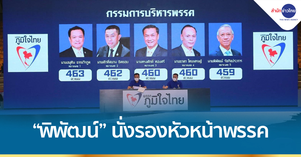 นายภราดร ปริศนานันทกุล โฆษกพรรคภูมิใจไทย เปิดเผยว่า การประชุมใหญ่สามัญประจำปี 2564 พรรคภูมิใจไทย ที่ประชุมมีมติเลือกตั้งกรรมการบริหารพรรคเพิ่ม 1 คน คือ นายพิพัฒน์ รัชกิจประการ และเลือกตั้งคณะกรรมการสรรหาผู้สมัครรับเลือกตั้ง จำนวน 11 คน ประกอบไปด้วย
