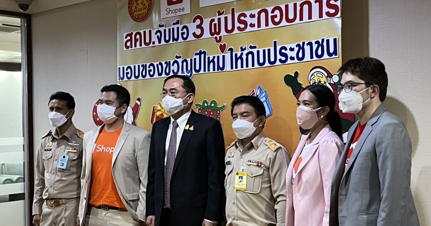 นายอนุชา นาคาศัย รัฐมนตรีประจำสำนักนายกรัฐมนตรี ในฐานะรับผิดชอบกำกับดูแลสำนักงานคณะกรรมการคุ้มครองผู้บริโภค ประชุมร่วมกับบริษัท shopee Lazada และเซ็นทรัล เจดี คอมเมอร์ซ จัดโครงการมอบของขวัญปีใหม่ให้กับประชาชน โดยให้ประชาชนสามารถซื้อสินค้าผ่านออนไลน์ราคาถูกและมีคุณภาพ ซึ่ง shopee เริ่มจัดโปรโมชั่นตั้งแต่วันที่ 1 – 31 มกราคม 2565 มอบคูปองส่วนลดราคาให้กับผู้ซื้อร้อยละ 20 เมื่อซื้อสินค้าราคา 250 บาทขึ้นไป ส่วนLazada เริ่มตั้งแต่วันที่ 1 – 5 มกราคม 2565 โดยมอบคูปองค่าขนส่งการซื้อสินค้าฟรี และส่วนลดสินค้าร้อยละ 80 พร้อมรับสิทธิ์เงินคืนร้อยละ 10 เฉพาะสินค้าที่ร่วมรายการ