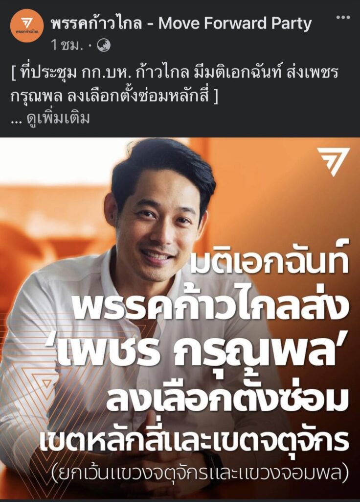 กรุงเทพฯ 24 ธ.ค.- ก้าวไกล มีมติเอกฉันท์ ส่ง “เพชร กรุณพล” ลงเลือกตั้งซ่อมเขตหลักสี่