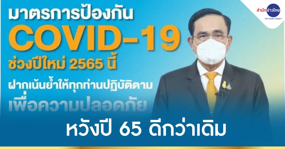 นายกรัฐมนตรี ระบุว่า ช่วงเวลาวันหยุดเทศกาลปีใหม่นี้ จึงขอให้พี่น้องประชาชนชาวไทยไม่ประมาท นั่นคือการใส่หน้ากากอนามัยทุกครั้ง และตลอดเวลาเมื่อต้องพบปะกับผู้อื่น หรือขณะกำลังเดินทาง รวมทั้งหลีกเลี่ยงสถานที่ที่มีความแออัด โดยเฉพาะในอาคารที่อากาศถ่ายเทได้ไม่ดี และหากยังไม่ได้ฉีดวัคซีน หรือถึงเวลาฉีดเข็มกระตุ้นแล้ว ให้รีบไปฉีดวัคซีนในสถานที่ต่าง ๆ ที่รัฐจัดเตรียมให้ เพื่อควบคุมสถานการณ์ให้ผ่านไปให้ได้ ไม่ให้เกิดภาวะผู้ป่วยล้นโรงพยาบาล