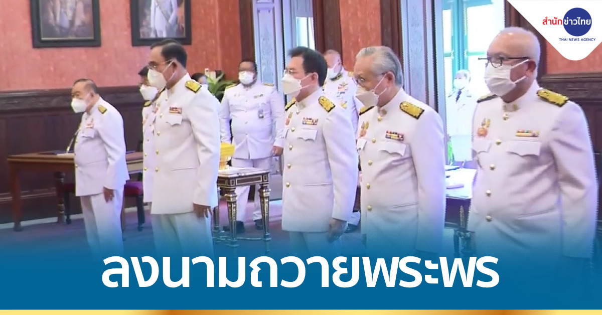 กรุงเทพฯ 1 ธ.ค.- นายกรัฐมนตรี คณะรัฐมนตรี รวมทั้งผู้แทนหน่วยงานภาครัฐ ภาคเอกชน และประชาชน ร่วมลงนามถวายพระพรเนื่องในโอกาสวันปีใหม่ 2565