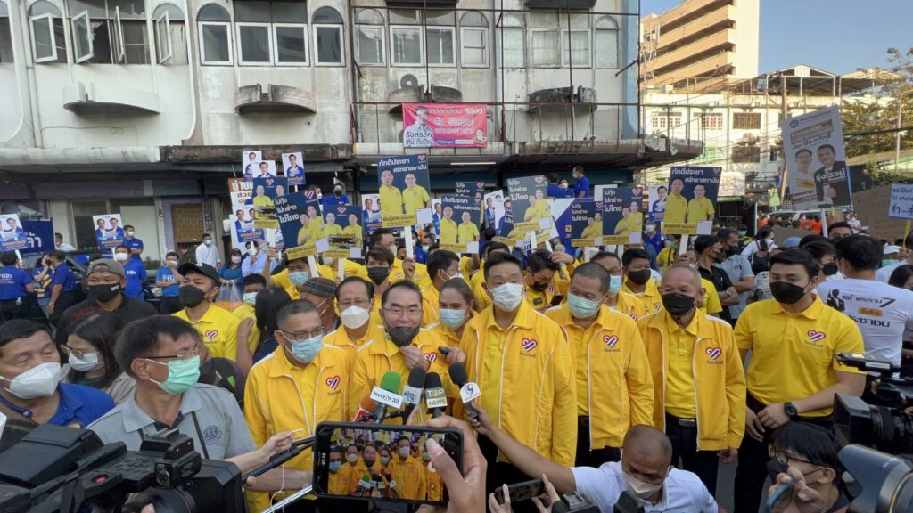 ผู้สื่อข่าวรายงานว่า บรรยากาศการเปิดรับสมัครเลือกตั้งซ่อมส.ส. เขต 9 หลักสี่-จตุจักร เริ่มคึกคักตั้งแต่เวลา 06.00 น. ทุกพรรคการเมืองที่ส่งผู้สมัครลงเลือกตั้งในครั้งนี้ ทั้งพรรคเพื่อไทย พรรคพลังประชารัฐ พรรคก้าวไกล พรรคไทยศรีวิไลย์ และ พรรคไทยศรีวิไลย์ มีบรรดากองเชียร์ของแต่ละพรรค มารอให้กำลังใจและถือป้ายสนับสนุน โดยแต่ละพรรคจะมีหัวหน้าพรรคและแกนนำพรรค เดินทางมาร่วมให้กำลังใจผู้สมัครของตนเอง ยกเว้น พลเอกประวิตร วงษ์สุวรรณ รองนายกรัฐมนตรี ในฐานะหัวหน้าพรรคพลังประชารัฐ ที่ไม่ได้เดินทางมา แต่มีนายชัยวุฒิ ธนาคมานุสรณ์ รัฐมนตรีว่าการกระทรวงดิจิทัลเพื่อเศรษฐกิจและสังคม รวมถึงส.ส. ของพรรคพลังประชารัฐ ที่มาพร้อมนางสรัลรัศมิ์ เจนจาคะ ผู้สมัครของพรรคพลังประชารัฐ โดยมีมวลชนถือป้ายสนับสนุน พร้อมส่งเสียงเชียร์มาตลอดเส้นทาง แต่ที่สร้างสีสัน คือพรรคยุทธศาสตร์ชาติ ที่มีการนำขบวนกลองยาวมาสร้างบรรยากาศคึกคักก่อนการรับสมัคร .-สำนักข่าวไทย