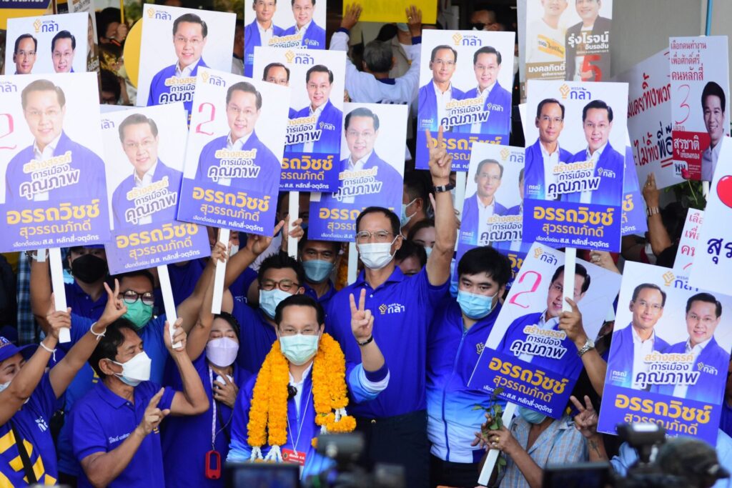 นายอรรถวิชช์ สุวรรณภักดี เลขาธิการพรรคกล้า และผู้สมัคร ส.ส.เขต 9 หลักสี่-จตุจักร พร้อมด้วยนายกรณ์ จาติกวณิช หัวหน้าพรรคกล้า เดินทางถึงสำนักงานเขตหลักสี่ พร้อมทีมงานและกองเชียร์