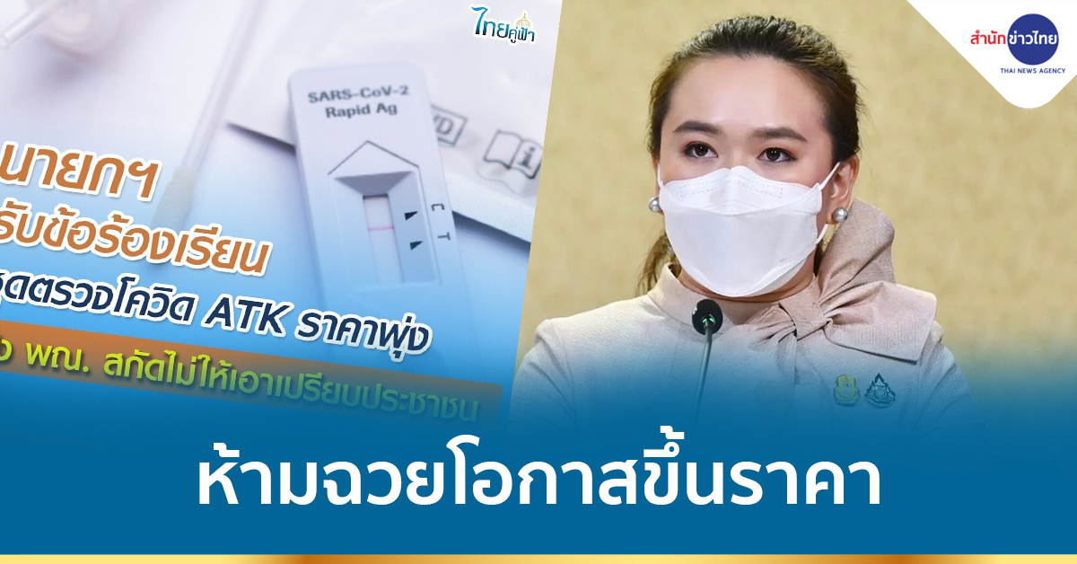 น.ส.ไตรศุลี ไตรสรณกุล รองโฆษกประจำสำนักนายกรัฐมนตรี กล่าวว่า ขณะนี้รัฐบาลได้รับข้อร้องเรียนจากหลายช่องทางเกี่ยวกับราคาชุดตรวจโควิด Rapid Antigen Test Kit (ATK) ด้วยตนเอง ที่ได้ปรับตัวเพิ่มขึ้น ทั้งในส่วนที่ขายในร้านขายยา และร้านค้าออนไลน์ เนื่องจากมีความต้องการใช้เพื่อการตรวจคัดกรองมากขึ้น ทั้งในช่วงเทศกาลปีใหม่ที่ใช้สำหรับคัดกรองก่อนเข้าร่วมกิจกรรมที่มีการรวมกลุ่ม และหลังเทศกาลปีใหม่ที่มีแนวโน้มการระบาดเพิ่มขึ้น