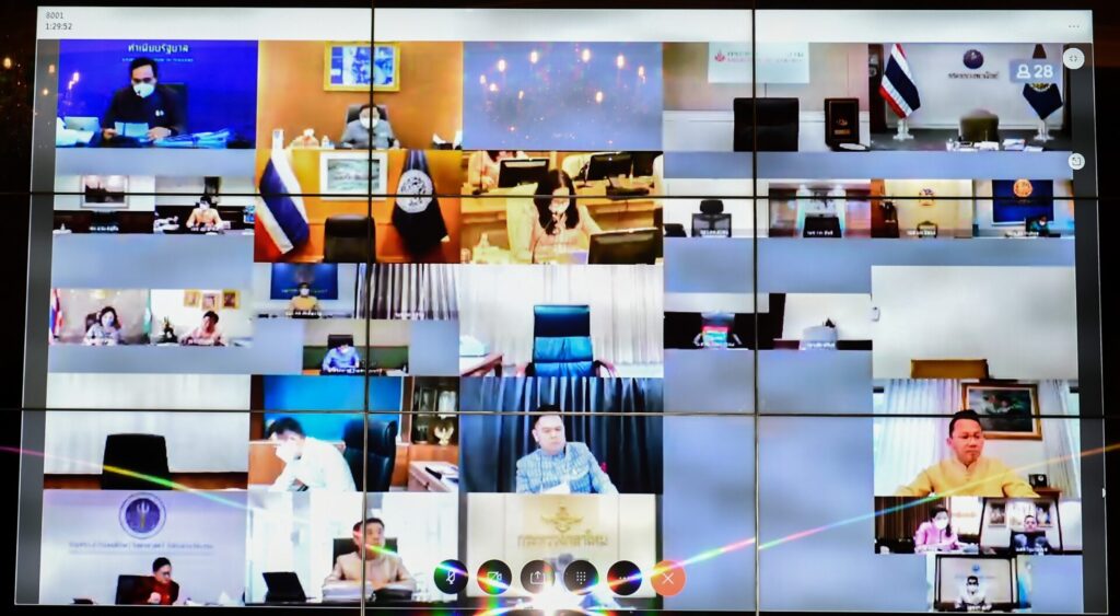การประชุม ครม. วันนี้ เป็นสัปดาห์ที่ 2 หลังปีใหม่ ที่ประชุมผ่านระบบ Video Conference รัฐมนตรีหลายคนโดยเฉพาะจาก ปชป. กักตัวที่บ้าน หลังนายเดชอิศม์ ขาวทอง รองหังหน้าพรรค ปชป. ดูแลภาคใต้ พื้นที่ จ.สงขลา ติดโควิด .-สำนักข่าวไทย