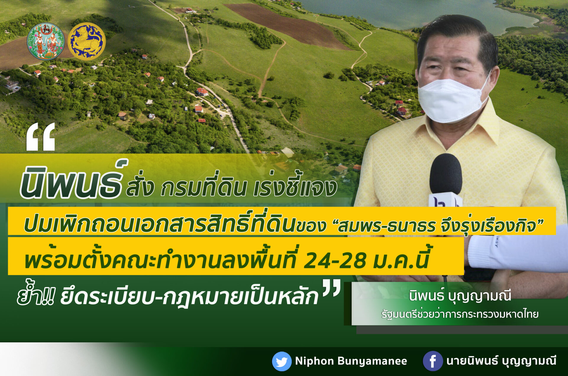 นิพนธ์ สั่ง กรมที่ดิน เร่งชี้แจงคืบหน้า ปมเพิกถอนเอกสารสิทธิ์ ที่ดิน 60 แปลง ของ สมพร-ธนาธร จึงรุ่งเรืองกิจ ย้ำยึดระเบียบ-กฎหมายเป็นหลัก
