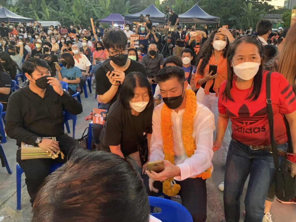 บรรยากาศการหาเสียงเลือกตั้งซ่อม สมาชิกสภาผู้แทนราษฎร เขตหลักสี่ จตุจักร วันนี้ พรรคก้าวไกล จัดปราศรัยใหญ่ที่สนามกีฬาชุมชนเสนานิคม 2 โดยมี ส.ส. คนสำคัญของพรรคเข้าร่วมเป็นจำนวนมาก รวมถึงนายธนาธร จึงรุ่งเรืองกิจ ประธานคณะก้าวหน้า อดีตผู้ก่อตั้งพรรคอนาคตใหม่ เดินทางมาร่วมฟังการปราศรัย