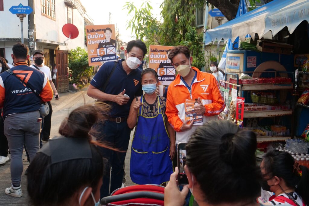 วันนี้ ( 25 ม.ค.) นายพิธา ลิ้มเจริญรัตน์ หัวหน้าพรรคก้าวไกล พร้อมนายกรุณพล เทียนสุวรรณ ผู้สมัคร ส.ส. เขตหลักสี่-จตุจักร เบอร์ 6 จากพรรคก้าวไกล เดินทางรณรงค์หาเสียงพบปะประชาชนบริเวณตลาดท่าทราย แขวงทุ่งสองห้อง เขตหลักสี่ โดยเน้นย้ำเชิญชวนออกไปเลือกตั้ง เพื่อส่งเสียงว่าเราไม่เอารัฐบาลที่ไม่มีประสิทธิภาพ ไม่เอาระบอบประยุทธ์ ในวันอาทิตย์ที่ 30 มกราคมนี้