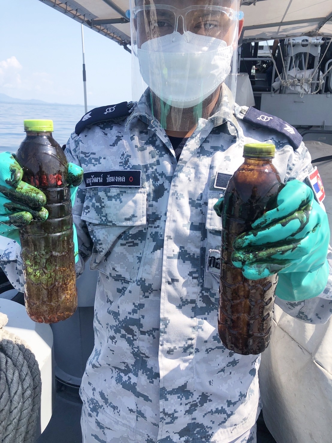 “กองทัพเรือสั่งการให้ทัพเรือภาคที่ 1 ส่งเครื่องบินลาดตระเวนขึ้นบินสำรวจคราบน้ำมันทางอากาศ และจัดเรือ ต.273 และเรือ ต.228 ออกตรวจสอบคราบน้ำมันบนผิวน้ำ จัดเฮลิคอปเตอร์ปราบเรือดำน้ำขึ้นบินตรวจสอบทิศทางการรั่วไหลของคราบน้ำมัน นำสารเคมี DASIC international SLICKGONE ขึ้นไปโปรยบริเวณพื้นที่เกิดเหตุ หน้าท่าเรือมาบตาพุด เตรียมกำลังพลพร้อมยุทโธปกรณ์สนับสนุนหน่วยต่าง ๆ ขจัดคราบน้ำมัน รวมทั้งตั้งศูนย์ควบคุมปฏิบัติในการป้องกันและขจัดมลพิษทางน้ำเนื่องจากน้ำมัน ทัพเรือภาคที่ 1 แล้ว สำหรับในส่วนของการประเมินสถานการณ์ ขอให้ติดตามข่าวสารจากกรมควบคุมมลพิษต่อไป” โฆษกกองทัพเรือ กล่าว.-สำนักข่าวไทย