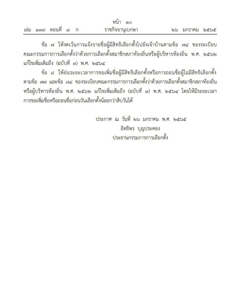 ทั้งนี้ได้มีประกาศคณะกรรมการการเลือกตั้ง เรื่อง ให้ขยายระยะเวลา ย่นระยะเวลา และงดเว้นการดําเนินการเกี่ยวกับการเลือกตั้ง กรณีคณะกรรมการการเลือกตั้ง สั่งให้มีการเลือกตั้งใหม่นี้ด้วย.-สำนักข่าวไทย