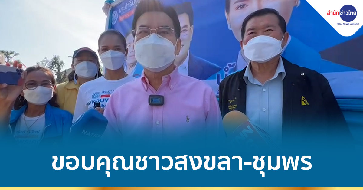 ขอถือโอกาสนี้กราบขอบคุณพี่น้องชาวสงขลา เขต 6 อีกครั้ง และขอเลยขอบคุณไปที่ชุมพร เขต 1 ด้วย สำหรับสงขลา เขต 6 ถือว่าเป็นความกรุณาของพี่น้องชาวสงขลา เขต 6 ซึ่งตนได้เคยให้สัมภาษณ์ไปว่าทั้งหมดคือเสียงสวรรค์ที่ชาวสงขลา มอบให้พรรคประชาธิปัตย์ และ ส.ส. สุภาพร กำเนิดผล ในการเลือกตั้งซ่อมที่ผ่านมา