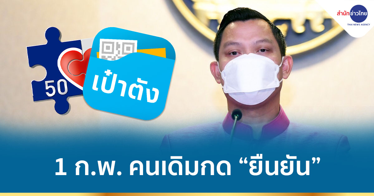 ทำเนียบ 30 ม.ค.- โฆษกรัฐบาลเผย 1 ก.พ. นี้ เตรียม “เป๋าตัง” ให้พร้อม 28 ล้านสิทธิเดิมกด “ยืนยัน” ใช้คนละครึ่งเฟส 4 ได้ทันทีทั่วประเทศ นายกฯ กำชับคลังเตรียมระบบให้พร้อมรองรับการใช้งาน